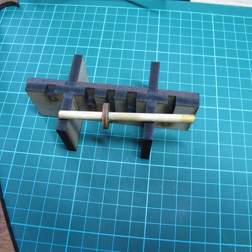 Не обошлось без моих косяков: одну ось пришлось вытачивать самостоятельно, т.к. родную вставил не туда куда нужно и демонтировать ее уже не представлялось возможным. Вытачивал на токарном станке Proxxon DB250. Я грешу на младшего, очень уж активно он меня отвлекал.
