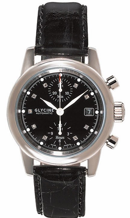 Новинка имеет круглый корпус из нержавеющей стали, диаметром 40,0 мм, толщиной 14,5 мм (версия модели с глухой задней крышкой) или 15,0 мм (версия модели с прозрачной задней крышкой), водонепроницаемый до 100 метров. На торце завинчивающейся рифленой заводной головки, расположенной на 3 часах, выгравирован логотип бренда Glycine. Пушеры хронографа размещены на 2 и 4 часах. Сапфировое стекло защищает циферблат, выполненный в различных цветах: черном, зеленым, желтым и др., с листьевидными часовой и минутной стрелками, покрытыми люминесцентным составом белого цвета. Модель оснащена швейцарским автоматическим механизмом ETA Valjoux 7750, на 25 камнях, с балансовой частотой 28800 полуколебаний в час (4 гц), 48-часовым запасом хода, с функциями индикации часов, минут (посредством соответствующих центральных стрелок), даты (посредством соответствующего цифрового указателя в апертуре, расположенной на 3 часах), а также с хронографом (центральная секундная стрелка, круглый аналоговый 30-минутный счетчик, расположенный на 12 часах и круглый аналоговый 12-часовый счетчик, расположенный на 6 часах). Поставляется на кожаном ремешке с застежкой из нержавеющей стали или на браслете из нержавеющей стали. MSRP модели составляет 2400 швейцарских франков. Источник: http://www.masterhorologer.com/2015/...urce=BP_recent |