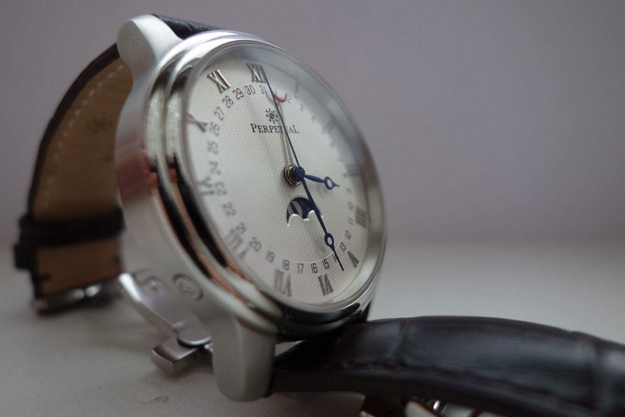 давече, приобрел с оказией часы Pointer Date/Moonphase PM-01 маленькой фирмы Perpetual, которая по сути есть один человек Алекс с парой помощников, как я понимаю. Фирма располагается в Гонконге. Делают часы очень небольшими партиями, поэтому почти всегда отсутствуют в свободной продаже.