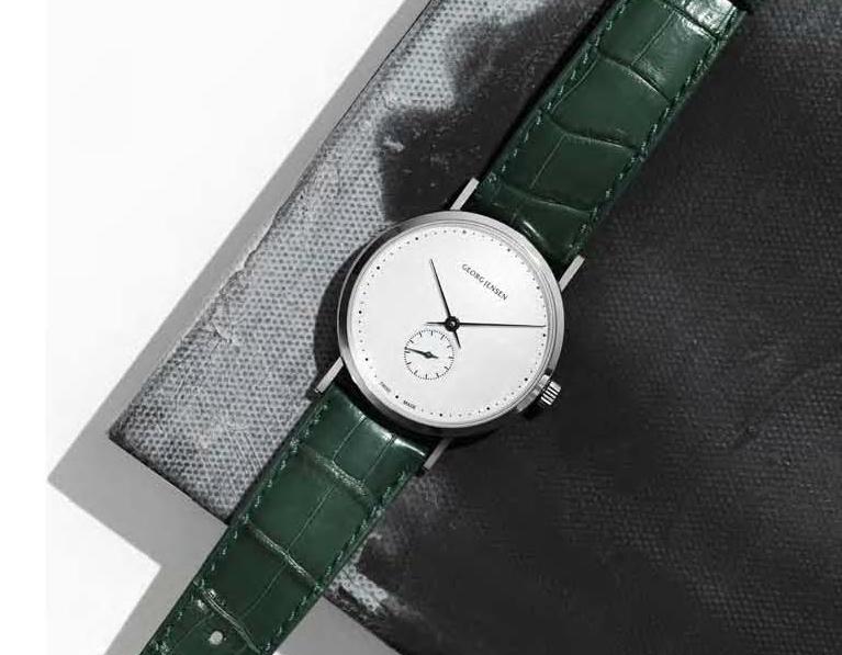 Круглый полированный корпус новинки, изготовленный из нержавеющей стали, диаметром 38,0 мм, водонепроницаемый до 30 метров. На торце рифленой заводной головки, расположенной на 3 часах, выгравирована эмблема бренда Georg Jensen. Сапфировое стекло защищает белый эмалевый циферблат с точечной часовой и десятиминутной разметкой и с тонкими черными стрелками. Модель оснащена швейцарским механизмом с ручным заводом ETA 7001 (Peseux), на 17 камнях, с балансовой частотой 21600 полуколебаний в час (3 гц), 42-часовым запасом хода, функциями индикации часов, минут (посредством соответствующих центральных стрелок) и секунд (на малом боковом циферблате, расположенном на 6 часах). Поставляется на зеленом ремешке из крокодиловой кожи с застежкой из нержавеющей стали. Источник: http://forums.timezone.com/index.php...=0#msg_6983908 |