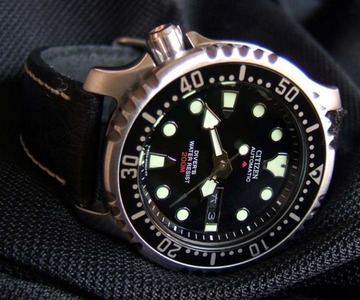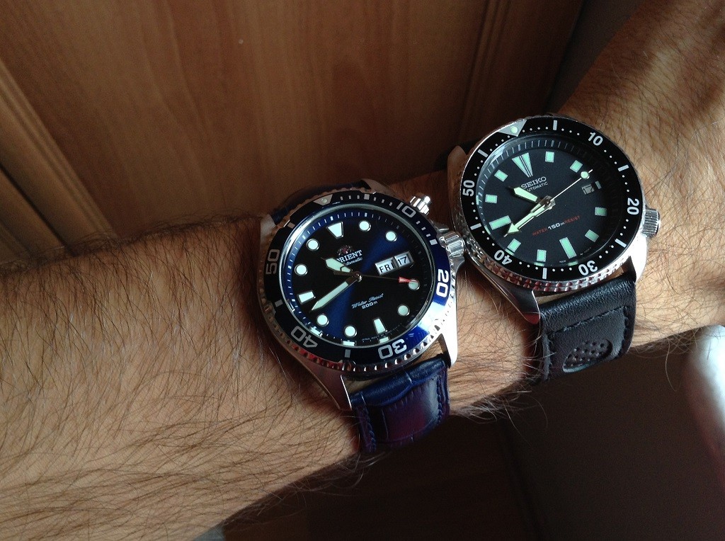 Потому ищу: 1. Дайвер с синим цифером (не против рассмотреть и др цвета) 2. На офис и под кэж имеются механические часы 3. Дайвер будет использоваться только в отпуске - раза 2-3 в год по 2 недели 4. Посему - ищу только кварц. 5. Желательно каучук, но могу и сам пересадить 6. Запястье около 20-20.5. Пилоты 47 мм смотрятся хорошо, кэж 42 мм тоже, а вот костюмники 39 уже маловаты кмк 7. Бюджет - в районе $200-300. 8. До отпуска ещё 2 месяца - могу, и скорее всего буду, заказывать онлайн. Что присмотрел: Citizen Eco-Drive Promaster Excalibur 200m - всё нравится. но на картинке цвет выглядит довольно блеклым и не насыщеным Orient Blue Mako - цифер выглядит очень приятно. Радует цвет и день/дата. Но механика - как она будет реагировать на столь редкое ношение (пару раз в год)? И Bulova Mens Marine Star Blue Chronograph Watch 98B200 - не совсем синие, но очень летние кмк. По размерам первые 2 - 41 мм, а Булова 44. Что будет органичнее смотреться на запястье в 20-20.5 см? Какие ещё интересные варианты можно рассмотреть в бюджете $200-300? |