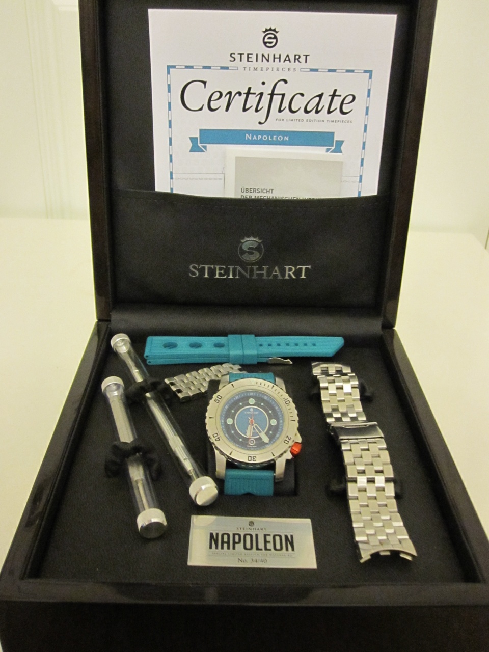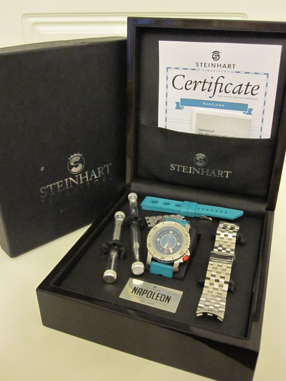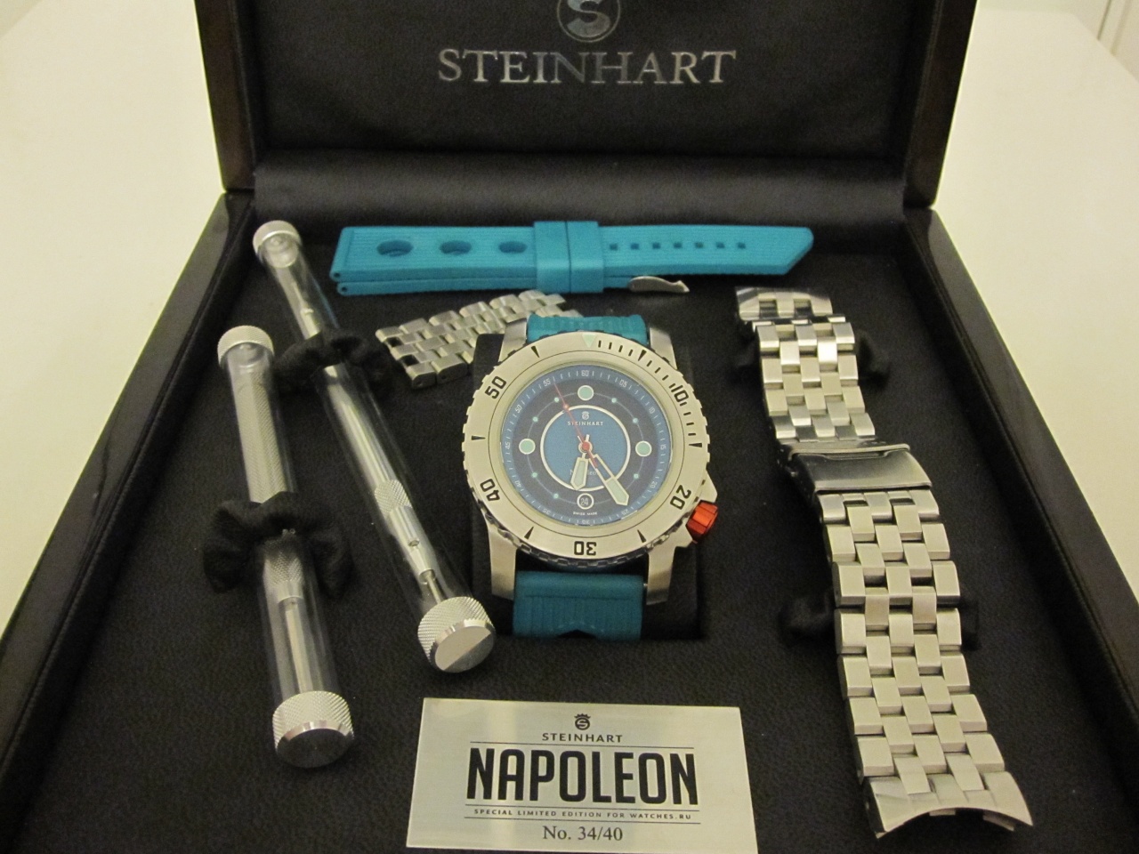 Пол: мужские Год покупки: не указано БУ часы, состояние: AA (отличное) http://forum.watch.ru/images/market-question.png Полировка: нет Цена: 600 EUR (продажа) Коробка: есть Документы: есть Продается одна из редчайших лимиток Steinhart. Было выпущено всего 40 экз. Описание этих часов на сайте производителя http://www.steinhartwatches.de/en/NA...0-pcs,393.html Тема о создании этих часов http://forum.watch.ru/showthread.php...light=napoleon Тема об этих часах http://forum.watch.ru/showthread.php...light=napoleon В комплекте - часы - стальной браслет - два каучуковых ремешка изготовленных специально для этой лимитки (один из них новый) - деревянная коробка (есть небольшое повреждение, возникшее при доставке) - внешняя картонная коробка - сертификат - гарантийный талон - два инструмента для замены ремешков Доставка в другие города обсуждаема. Вложение 957657 Вложение 957658 Вложение 957659 Вложение 957660 |