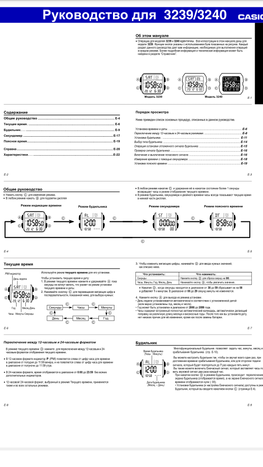 Облазил весь интернет и не нашел инструкцию на русском языке к часам CASIO 3239 W-96H. Выкладываю ссылку на собственноручно сделанный перевод: