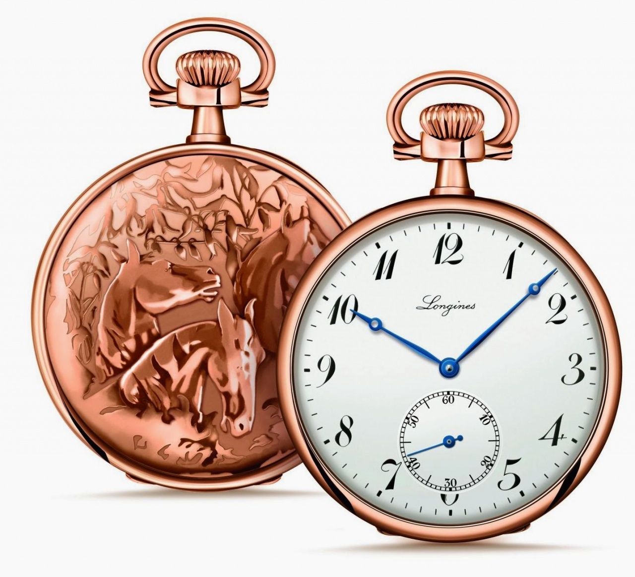 Круглый полированный корпус новинки, изготовленный из 18-каратного розового золота, диаметром 48,2 мм. Рифленая заводная головка и кольцо для цепочки расположены на 12 часах. Задняя крышка часового корпуса глухая, на ней имеется штампованное изображение трех лошадей. Сапфировое стекло с меогослойным антибликовым покрытием защищает полированный лаковый циферблат белого цвета с напечатанными черными арабскими цифрами и воронеными стрелками (в том числе часовой и минутной с "яблоками Бреге"). Модель оснащена швейцарским механизмом с ручным заводом L878.4 (Longines 37.9 ABC), на 17 камнях, с балансовой частотой 18000 полуколебаний в час (2,5 гц), 40-часовым запасом хода, функциями индикации часов, минут (посредством соответствующих центральных стрелок) и секунд (на соответствующем малом боковом циферблате, расположенном на 6 часах). Лимитированный выпуск 20 экземпляров. Вложение 974070Вложение 974071 Longines Lépine pocket watch, 1911 года выпуска: Вложение 974072 Источник: http://www.masterhorologer.com/2015/...ch-horses.html |