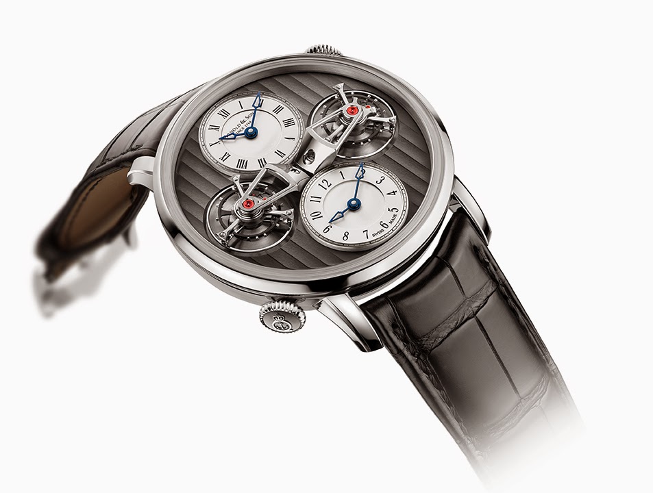 Британская часовая компания Arnold & Son, производящие свои часы в Швейцарии, выпустила новую лимитированную модель Double Tourbillon Escapement (Ref. 1DTAW.S01A.C121W).