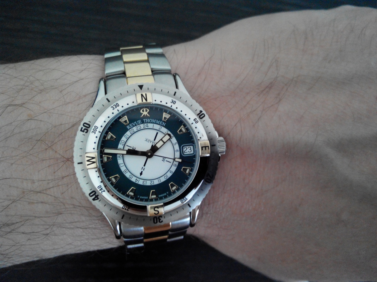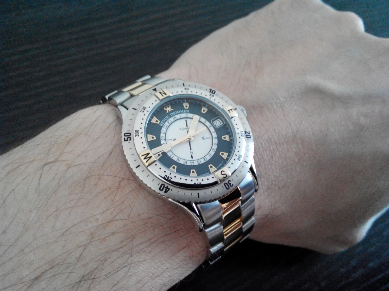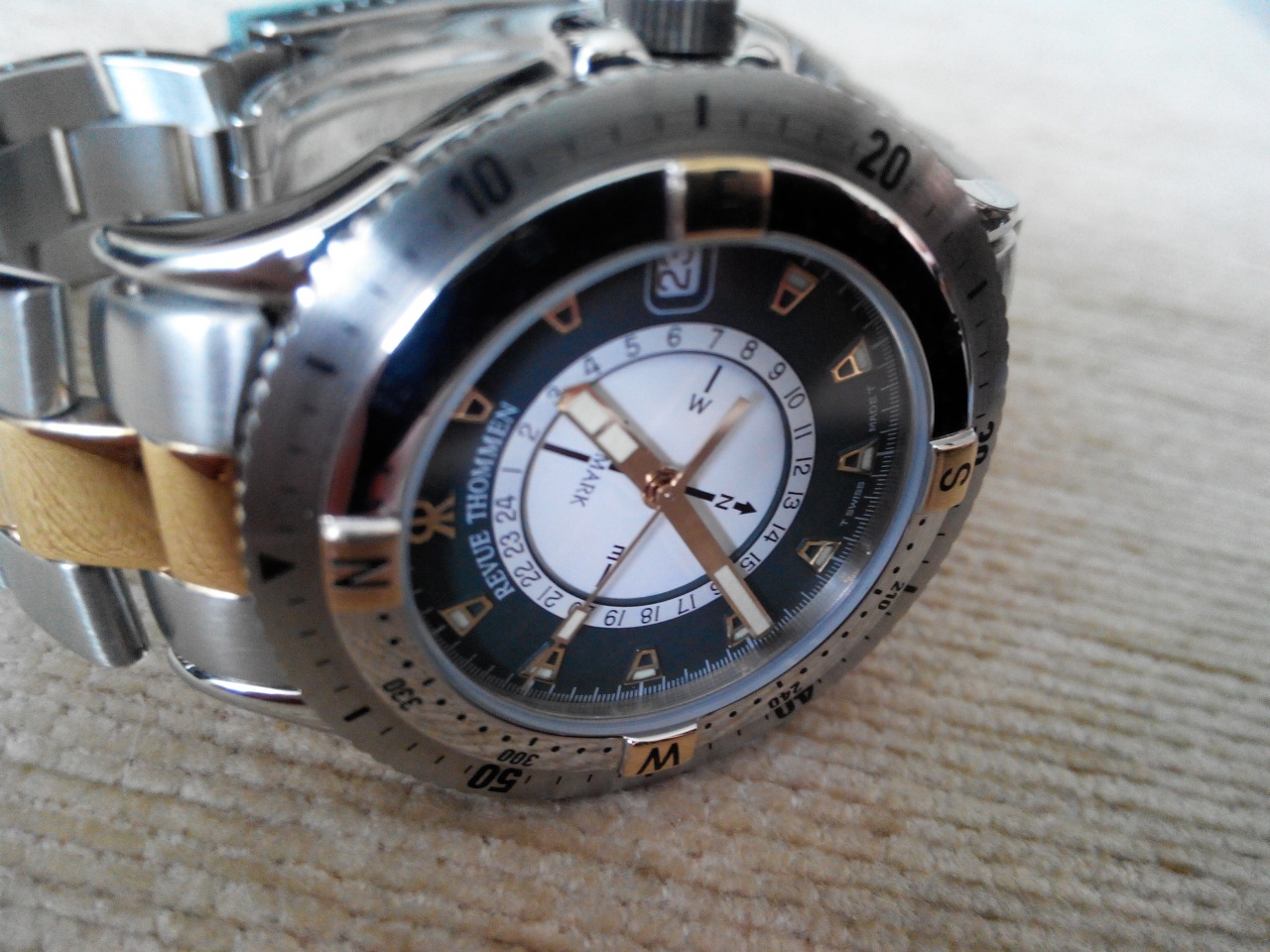 Пол: мужские Год покупки: 2015 Новые часы, состояние: N (новые в пленках) http://forum.watch.ru/images/market-question.png Цена: 15 000 руб. (продажа) Коробка: есть Документы: есть Продам новые, оригинальные, швейцарские часы Revue Thommen Seamark . Механизм кварцевый ETA 955.122 T. Корпус из полированной, нержавеющей, хирургической стали 316L.Диаметр корпуса 36 мм. Высота корпуса 9 мм. Сапфировое стекло. Двойной вращающийся безель. Комбинированный ,темно -зеленый с белым , циферблат с 24- часовой разметкой для использования часов в качестве солнечного компаса (есть инструкция по эксплуатации на английском языке). Дата на 3 часах. Центральная секундная стрелка. Люминесцентные стрелки и часовые метки. Завинчивающиеся задняя крышка и заводная головка с логотипом компании.Водозащита - 200 м. Браслет из нержавеющей хирургической стали 316L, основная часть - браш (матовая), центральные звенья - полированные, с позолотой. Часы абсолютно новые, в пленках. |