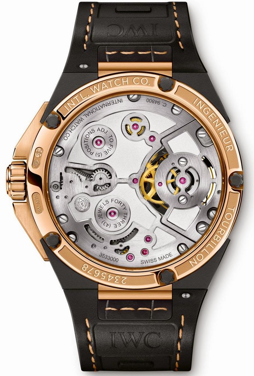 Модель оснащена мануфактурным швейцарским механизмом с ручным заводом IWC 94800, на 43 камнях, с балансовой частотой 18000 полуколебаний в час (2,5 гц), 96-часовым запасом хода, функциями индикации часов, минут (посредством соответствующих центральных стрелок), секунд (посредством соответствующей стрелки, установленной на каретке минутного турбийона, расположенной в круглой апертуре на 9 часах), запаса хода (посредством соответствующего аналогового указателя, расположенного между 4 и 5 часами), фаз Луны в Северном и Южном полушариях и с обратным отсчетом времени, остающегося до следующего полнолуния (посредством соответствующего круглого комплексного указателя, расположенного на 13 часах), а также с минутным турбийоном. Цитата: