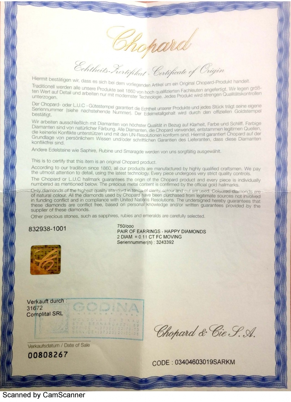 Продаются красивейшие серьги и подвеска Chopard Happy Diamonds из белого золота с бриллиантами 0,16 карат.