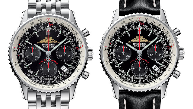 Круглый корпус новинки, изготовленный из нержавеющей стали, диаметром 42,0 мм, водонепроницаемый до 30 метров. На торце рифленой заводной головки, расположенной на 3 часах, выгравирован логотип бренда Breitling. Пушеры хронографа размещены на 2 и 4 часах. На глухой полированной задней крышке часового корпуса выгравированы эмблема и девиз AOPA, а также номер часов в лимитированной серии. Сапфировое стекло с антибликовым покрытием защищает матово-черный циферблат с вращающейся белой логарифмической шкалой на его периферии. Накладные часовые индексы, часовая и минутная стрелки покрыты люминесцентным составом белого цвета. Модель оснащена швейцарским автоматическим механизмом Breitling 23 (базовый калибр ETA Valjoux 7753), официально сертифицированным COSC (Contrôle Officiel Suisse des Chronomètres) в качестве хронометра, функциями индикации часов, минут (посредством соответствующих центральных стрелок), секунд (на соответствующем малом боковом циферблате, расположенном на 9 часах), даты (посредством соответствующего цифрового указателя в апертуре, расположенной между 4 и 5 часами), а также с хронографом (центральная секундная стрелка красного цвета с объемным логотипом бренда Breitling на ее противовесе, круглый аналоговый 30-минутный счетчик, расположенный на 3 часах и круглый аналоговый 12-часовый счетчик, расположенный на 6 часах). Поставляется на черном ремешке из телячьей кожи с белой прошивкой и с застежкой из нержавеющей стали или на фирменном браслете из нержавеющей стали. Лимитированный выпуск 500 пронумерованных экземпляров. Цена модели Breitling Navitimer AOPA Limited Edition на кожаном ремешке составляет $ 6500, а на стальном браслете - $ 7655. Вложение 1004565 Вложение 1004566 Вложение 1004567 Вложение 1004568 Источник: http://www.watchesbysjx.com/2015/05/...ion-roots.html |