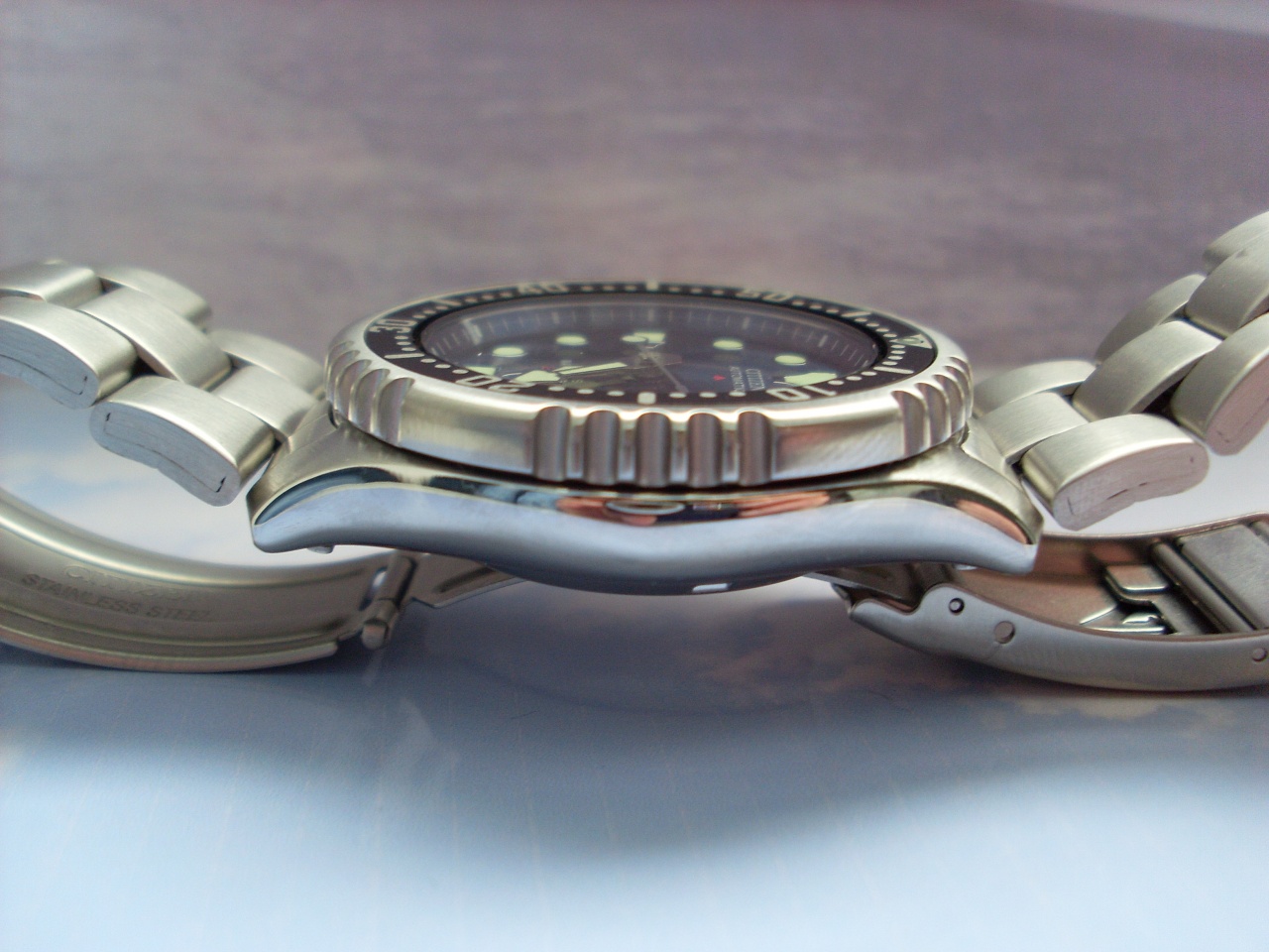 Сегодня стал засматриваться на ту же модель, но только в синем исполнении. Сразу отмечу, что очень понравилось оформление меток циферблата и сине-голубой цвет, который судя по фоткам очень здорво играет на солнце. Однако несмотря на то, что продаются часы сетом каучук и браслет, браслет мне не понравился так как штамповка. Подобрать бы к этим часам достойный браслет, была бы вовсе ляпота.:D Прошу не стесняемся, делимся своим мнением касательно данной модели. С уважением, Роман. Вложение 1016250Вложение 1016251Вложение 1016252Вложение 1016253Вложение 1016258Вложение 1016259 Вложение 1016272Вложение 1016273Вложение 1016274Вложение 1016275 Вложение 1016278Вложение 1016279 |