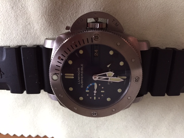 Пол: мужские Год покупки: 2011 БУ часы, состояние: AA (отличное) http://forum.watch.ru/images/market-question.png Полировка: нет Цена: 12 500 EUR (продажа) Коробка: есть Документы: есть Готовимся к пляжному сезону!!! Продается лимитка (500 шт) Panerai 00371 Luminor Submersible 1950 Regatta 3 days GMT automatic titano - идеальные часы для путешествия к морю! Легкие титиновые на каучуковом ремешке с автоподзаводом со второй часовой зоной! Покупал в Германии в 2011 году. Состояние отличное! Коробка, документы, второй ремешок! МЕХАНИЗМ Автоматический механизм, калибр Panerai P.9001, производство Panerai, 13¾ линии, толщина 7,9 мм, 29 камней, баланс из сплава Glucydur®, 28 800 полуколебаний/час. Противоударное устройство Incabloc®. Запас хода 3 дня, два заводных барабана. 229 деталей. ФУНКЦИИ Часы, минуты, малая секундная стрелка, дата, второй часовой пояс, индикатор запаса хода на задней части механизма, расчет времени погружения. КОРПУС Диаметр 47 мм, матовый титан. БЕЗЕЛЬ Безель из матового титана с полированными краями, с односторонним вращением против часовой стрелки, градуированной шкалой для расчета времени с интервалом в минуту. ЗАДНЯЯ КРЫШКА Прозрачное сапфировое стекло. Нанесенная по периметру гравировка «Classic Yachts Challenge 2011». УСТРОЙСТВО ЗАЩИТЫ ЗАВОДНОЙ ГОЛОВКИ (protected as a trademark) Матовый титан. ЦИФЕРБЛАТ Синего цвета, с накладными светящимися точками и часовыми метками. Дата в положении «3 часа», секундная стрелка в положении «9 часов». СТЕᴋᴫᴏ Сапфировое, выполнено из корунда, толщина 2,9 мм. Антибликовое покрытие. ВОДОНЕПРОНИЦАЕМОСТЬ 30 бар (~ 300 метров). РЕМЕШОК Фирменный каучуковый ремешок PANERAI с крупной пряжкой из матового титана. Поставляется со вторым сменным ремешком, инструментом для замены ремешка и стальной отверткой. Вложение 1018975 Вложение 1018976 |