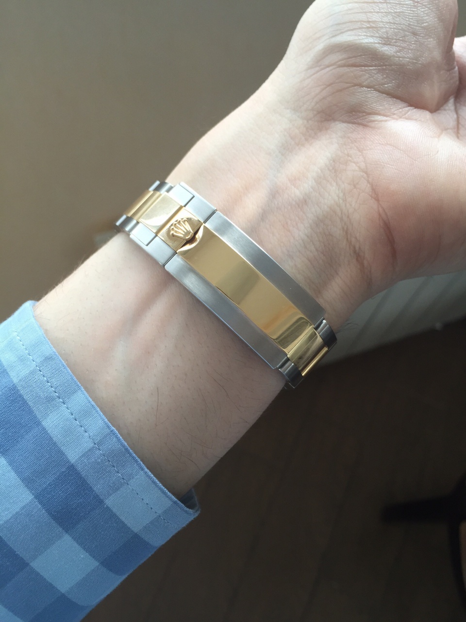 дж2 сидели как-то великовато, но и биколор тоже не мал на вашей руке, запастье где-то 18 наверное? |