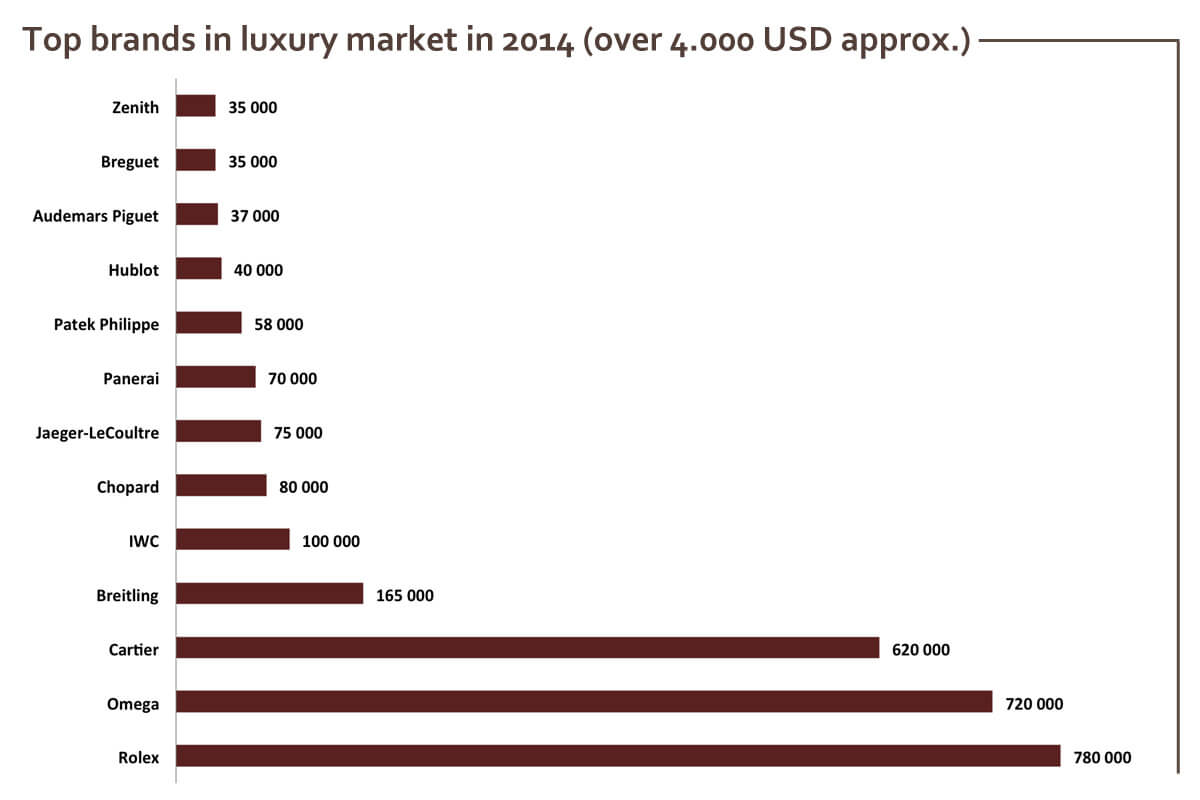 Компания Картье снизила обороты. В 2013 г. выпустила 650 тыс., а в 2014 г - 620 тыс.