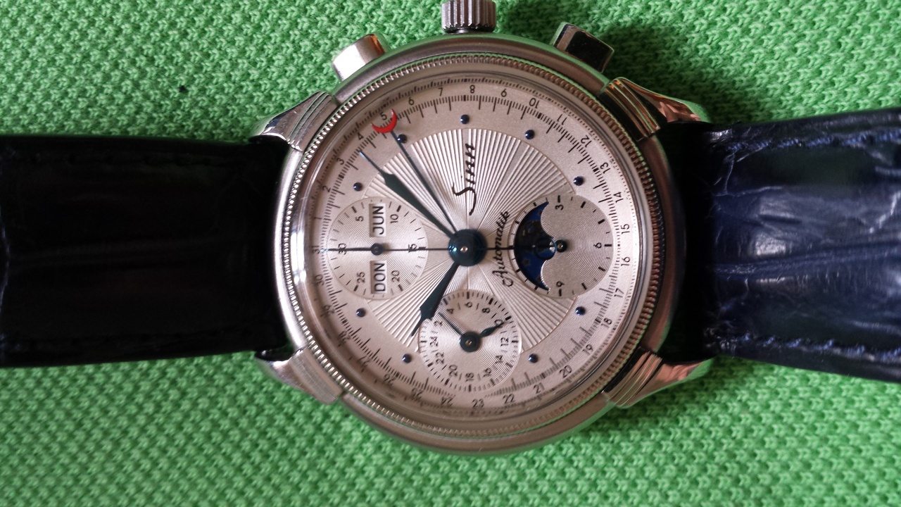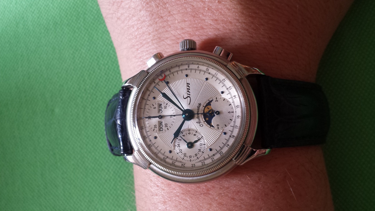 Часы Sinn 6015 ST Вложений: 8 Sinn - 6015 st Пол: мужские Год покупки: не указано БУ часы, состояние: AA (отличное) http://forum.watch.ru/images/market-question.png Полировка: да, делалась Цена: 70 000 руб. (продажа) Коробка: есть Документы: есть Номер модели/Ref. 6015.0062 Тип механизма Автоподзавод Материал корпуса Сталь Материал браслета Кожа Состояние хорошее Пол Мужские Тип механизма Автоподзавод Калибр/Механизм Valjoux 7751 Корпус Материал корпуса Сталь Диаметр 37,5 mm Толщина 14 mm Водонепроницаемые 3 атм Материал люнета/Безеля Сталь Cтекло Плексиглас Циферблат Белый Цифры Без цифр ремешок Кожа аллигатор синий не ориг Застёжка Застёжка ориг Функции Индикатор фазы Луны, Хронограф, Дата, Индикатор дней недели Прочее Малый секундный циферблат, Гильошированный циферблат, Быстрый перевод даты Вложение 1030671Вложение 1030672Вложение 1030673 Вложение 1030674Вложение 1030675Вложение 1030676 Вложение 1030677Вложение 1030678 |