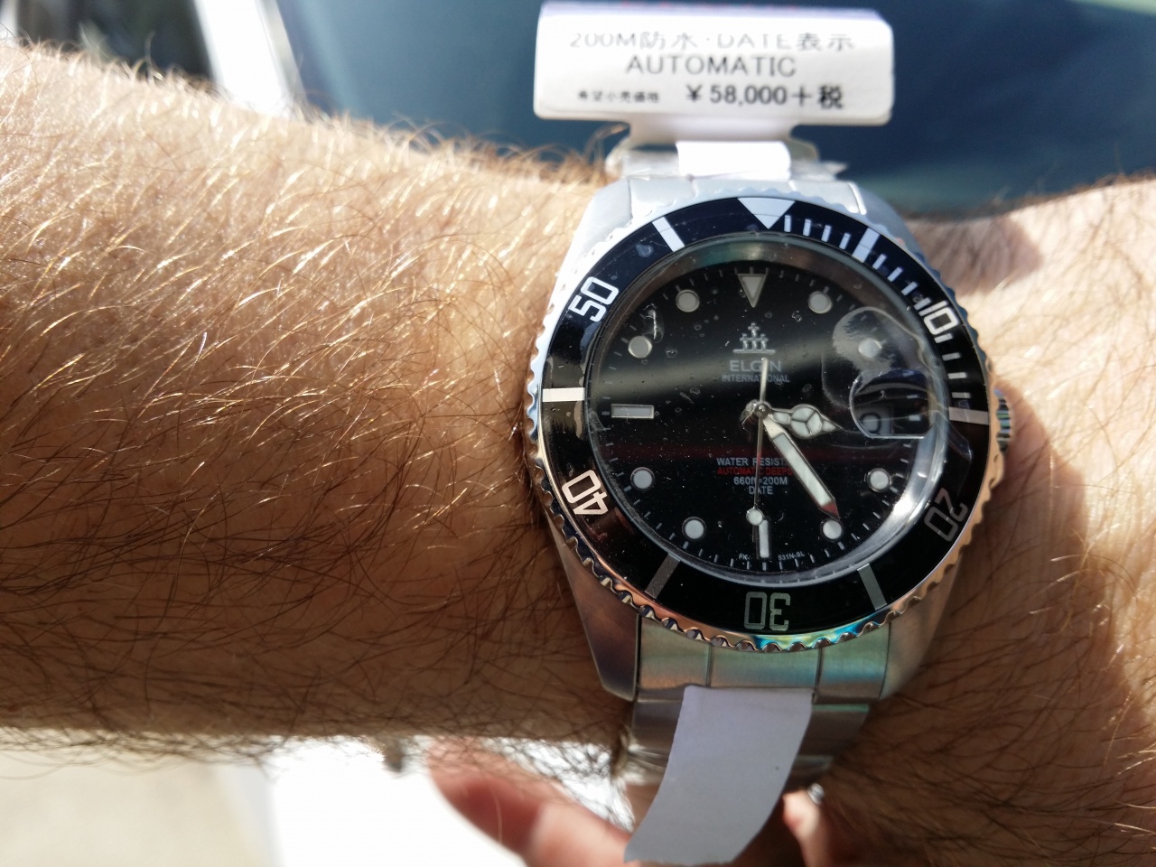 пришли вот такие красывые часики Elgin FK-531 корпус нерж. механика автоподзавод плюс ручка. на калибре citizen . размер 40мм. дизайн субмаринер. головка крышка завинчиваются wr-200m. фото на руке будут позже