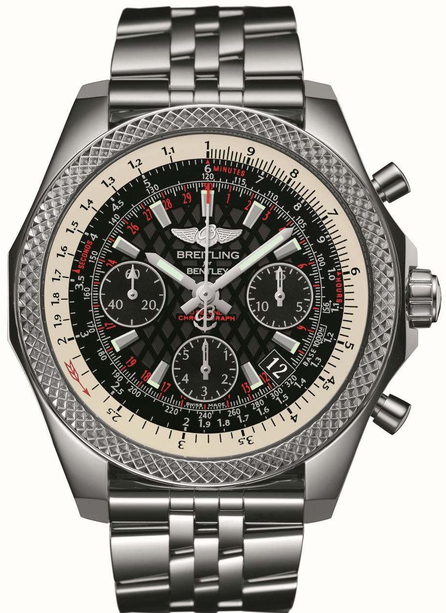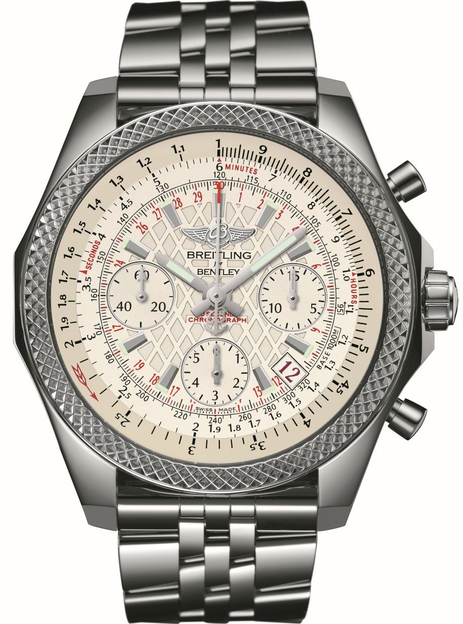 У новинки круглый корпус, изготовленный из 18-каратного розового золота или из нержавеющей стали, диаметром 44,0 мм, водонепроницаемый до 100 метров. На торце защищенной завинчивающейся заводной головки, расположенной на 3 часах, выгравирован логотип бренда Breitling. Пушеры хронографа размещены на 2 и 4 часах. Вращающийся зубчатый безель с круговой логарифмической линейкой. Сапфировое стекло установлено на передней стороне корпуса (выпуклое, с двусторонним антибликовым покрытием) и на его завинчивающейся задней крышке. Циферблат с решетчатой отделкой, матово-черного или белого цвета, с накладными часовыми индексами, часовой и минутной стрелками, покрытыми белым люминесцентным составом. Модель оснащена мануфактурным швейцарским автоматическим механизмом Breitling B06, на 47 камнях, с балансовой частотой 28800 полуколебаний в час, 70-часовым запасом хода, с функциями индикации индикации часов, минут (посредством соответствующих центральных стрелок), секунд (на соответствующем малом боковом циферблате, расположенном на 9 часах), даты (посредством соответствующего цифрового указателя в апертуре, расположенной между 4 и 5 часами) и с хронографом (центральная секундная стрелка, совершающая круг по циферблату за 30 секунд, а также 15-минутный счетчик, расположенный на 3 часах и 6-часовый счетчик, расположенный на 6 часах). Калибр отлично отделан и декорирован; официально сертифицирован COSC (Contrôle Officiel Suisse des Chronomètres) в качестве хронометра. Поставляется на ремешке из крокодиловой кожи, или на каучуковом ремешке, или на браслете из нержавеющей стали. Вложение 1044977Вложение 1044978 Источник: http://www.masterhorologer.com/2015/...ley-b06-s.html |