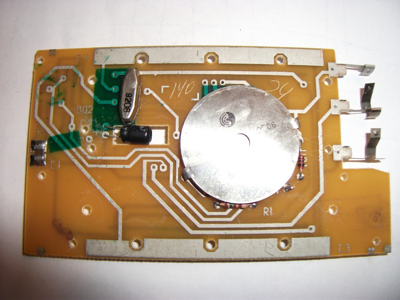 Там кварц вообще без конденсаторов подключен. Хорошо, попробую на минус, тот поближе будет.