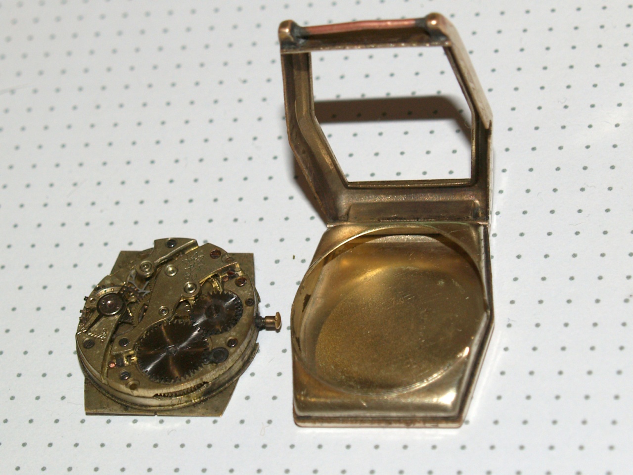 Нанесли позолоту, полная чистка механизма, подобрали стрелки и заводную головку, изготовили временный циферблат (над старым еще работают) ну и ремень Hirsch. Смотреть уже не страшно (наверное). |