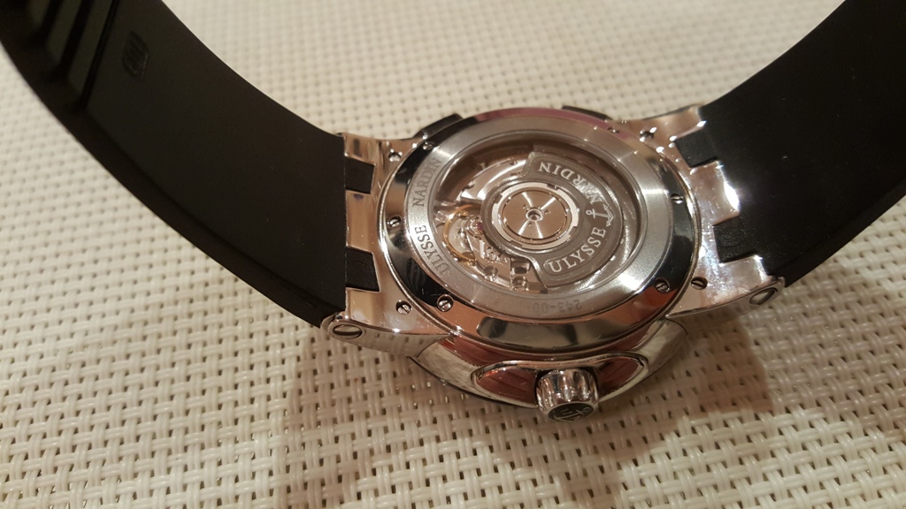 Уважаемые форумчане! Помогите пожалуйста определить оригинальные ли это Ulysse Nardin или это подделка? Почему задаю вопрос: 1. Часы куплены с рук у не знакомого мне человека; 2. Сейчас очень много умелых подделок; 3. Из документов к часам был лишь не заполненный гарантийный талон; 4. Тут на форуме во мне посеяли большие сомнения относительно подлинности вообще всех часов купленных в не проверенных местах, особенно после того как я прочитал историю про Ролексы и салон в Москве, который подтвердил подлинность подделки.... Поэтому прошу отнестись ко мне с пониманием, я новичек, фотографировал на телефон, очень старался...))) Всех заранее благодарю за оказанное внимание! )Вложение 1055556