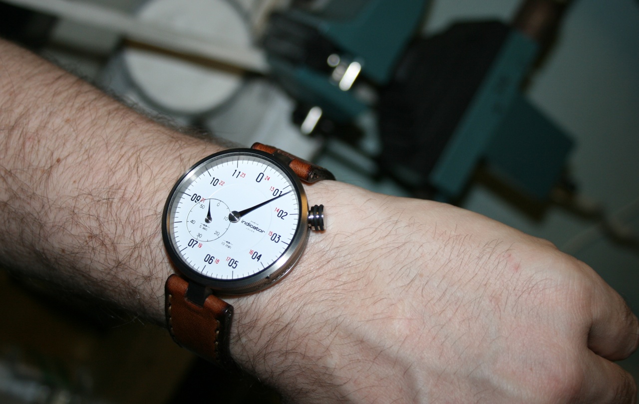 однострелочник с секундной стрелкой? лучше бы маленькую стрелку сделали минутной, а еще лучше секундная и минутная на маленьком циферблате (ах да, для этого пришлось бы немного переделать механизм)