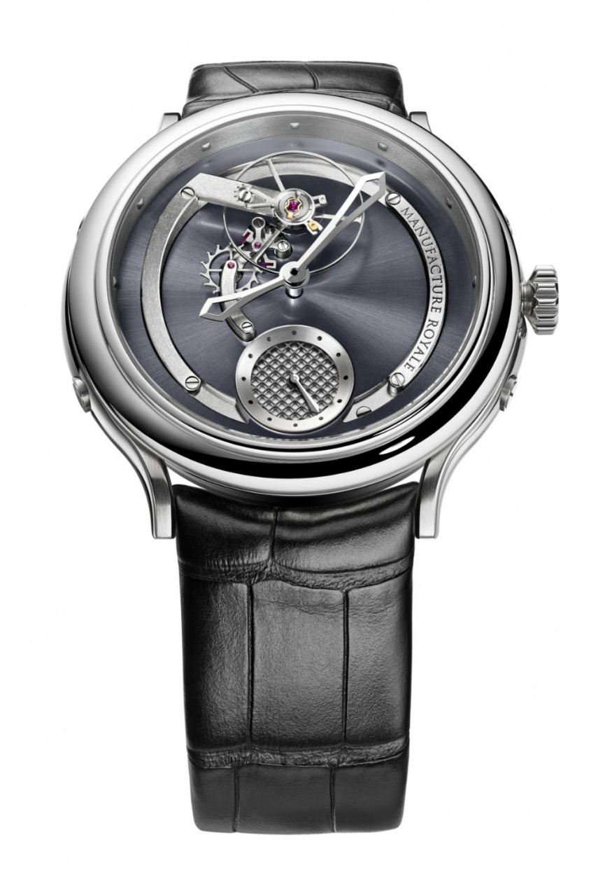 Новая модель 1770 Voltige от швейцарской часовой компании Manufacture Royale отличается, в частности, спуском ее калибра, расположенным над циферблатом, что при работе механизма производит завораживающий визуальный эффект.