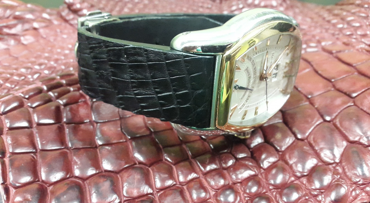 Прошло 6 лет. Часы носил по-разному. То часто, то лежали подолгу, т.к. на руке были разные спортивные. В отличие от памов-трехдневников, эти часы частенько вставали, не получив подзавода. Например, за выходные. Постепенно ремешок выходил из строя - появилось расслаивание. И оно усиливалось. Попытался лечить секундным клеем на скорую руку. Эффект был не очень. В общем, как заметил Брусницын, "ремень изношен на 100%!!!"))) Если снаружи это было не очень заметно Вложение 1082844 Вложение 1082845 то внутри... (на фото, правда, уже немного препарированный ремень) Вложение 1082842 Вложение 1082843 В прошлом году (летом, что ли) решил заменить. У официалов ремень тогда стоил то ли 15, то ли 18 тысяч. + 500 р замена. Сейчас, по логике вещей, стоить должен гораздо дороже. Но я не узнавал даже. Сумма мне эта не понравилась. Да и в основном сейчас ношу полуспортивную одежду... В общем, отложил на некоторое время замену. А вот недавно подумал, что негоже хорошим часам лежат "инвалидами". И решил заменить-таки. Но к тому моменту (после этапа ПАМо-страпомании)уже были знакомые мастера ременных дел. Поэтому решил сделать у кого-то из них. Во-первых, большой выбор кожи (официальное предложение- 2 цвета "плоского" крокодила), во-вторых, стоимость в несколько раз ниже. У кого же делать? Я решил у Брусницына. Мне понравилось, как этот мастер обсуждает детали) Да и контакт в ходе сотрудничества установился довольно тесный) Ремень снял с часов самостоятельно (4 длинных винта вкручиваются в резьбу корпуса часов, проходят его и входят в пластиковую вставку ремня. Винты вкручиваются сбоку. Они на виду. Поэтому надо действовать аккуратно, чтобы не сорвать шлиц или не сотворить царапку на матовом боку часов. Заодно и корпус чуть протер от "накипи" лет. Вложение 1082876 Вложение 1082877 Вложение 1082878 Брусницыну отправил оригинальный ремень, чтобы сделать точный аналог. В старом ремне есть пластиковая вставка, которую надо переставить в новый. Без нее будет не айс. Вложение 1082885 В качестве материала я выбрал кожу ножки каймана (вроде, так называется). Красивая рельефная кожа. Давно мне нравилась + вроде как следование концепции оем-ремня. Вложение 1082864 Прошло некоторое время, получил от Дениса фото именно моего задела кожи. Вложение 1082868 А чуть позже - фото уже почти готового ремня Вложение 1082870 Вот сижу, жду. Посылка на полпути Питер-Москва. Возможно, уже сегодня надену на часы. |