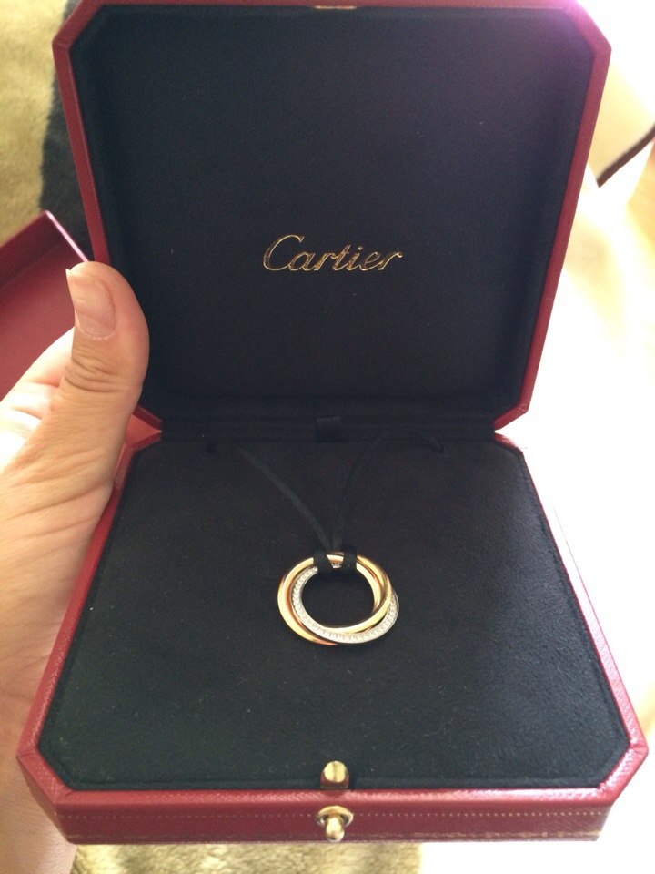 Подвеска CARTIER TRINITY золото, бриллианты, снова в продаже, вот такая, нажимаем и смотрим , как новая, надевали пару раз, следов от использования нет, коробка и документы в комплекте.