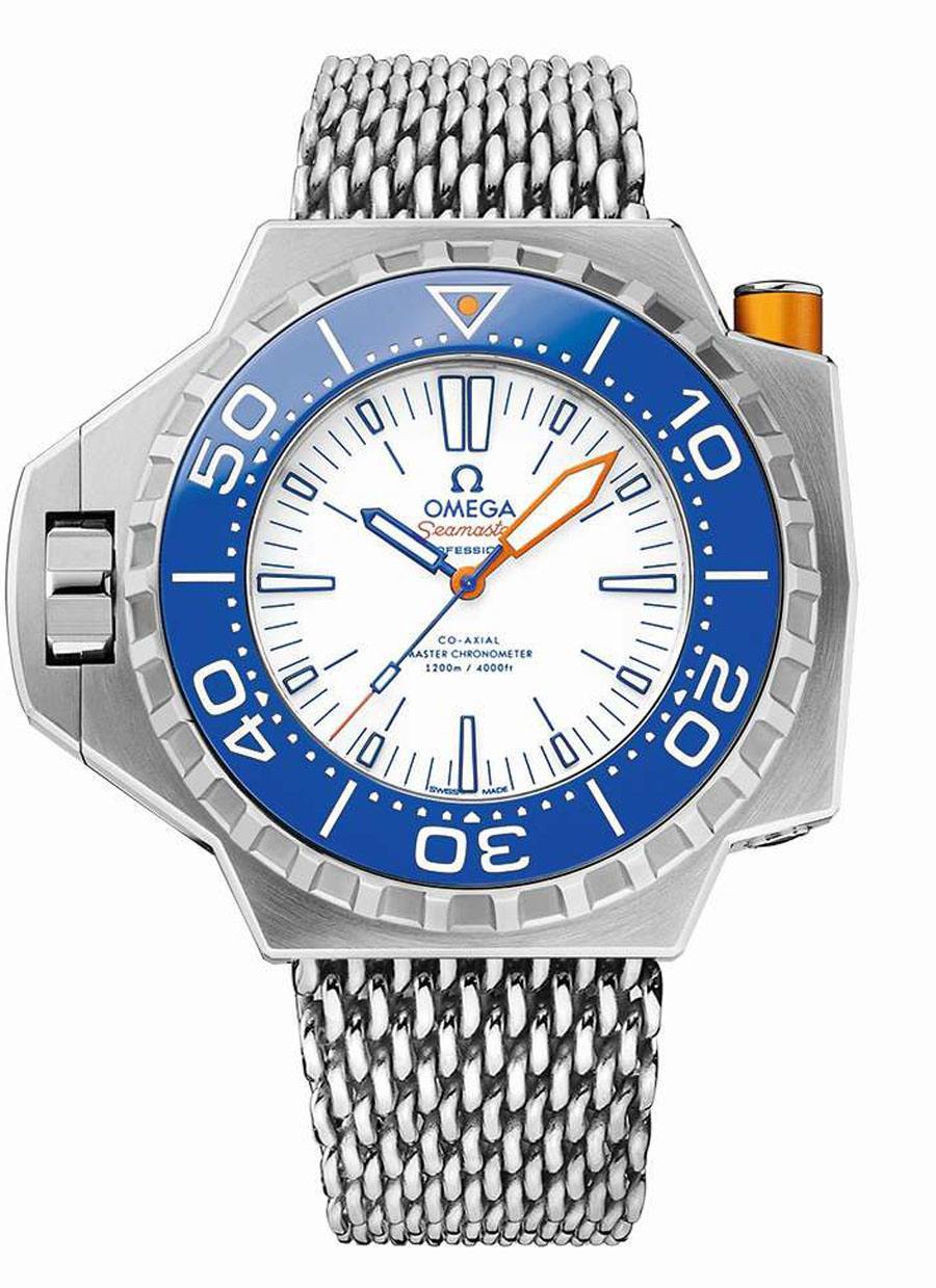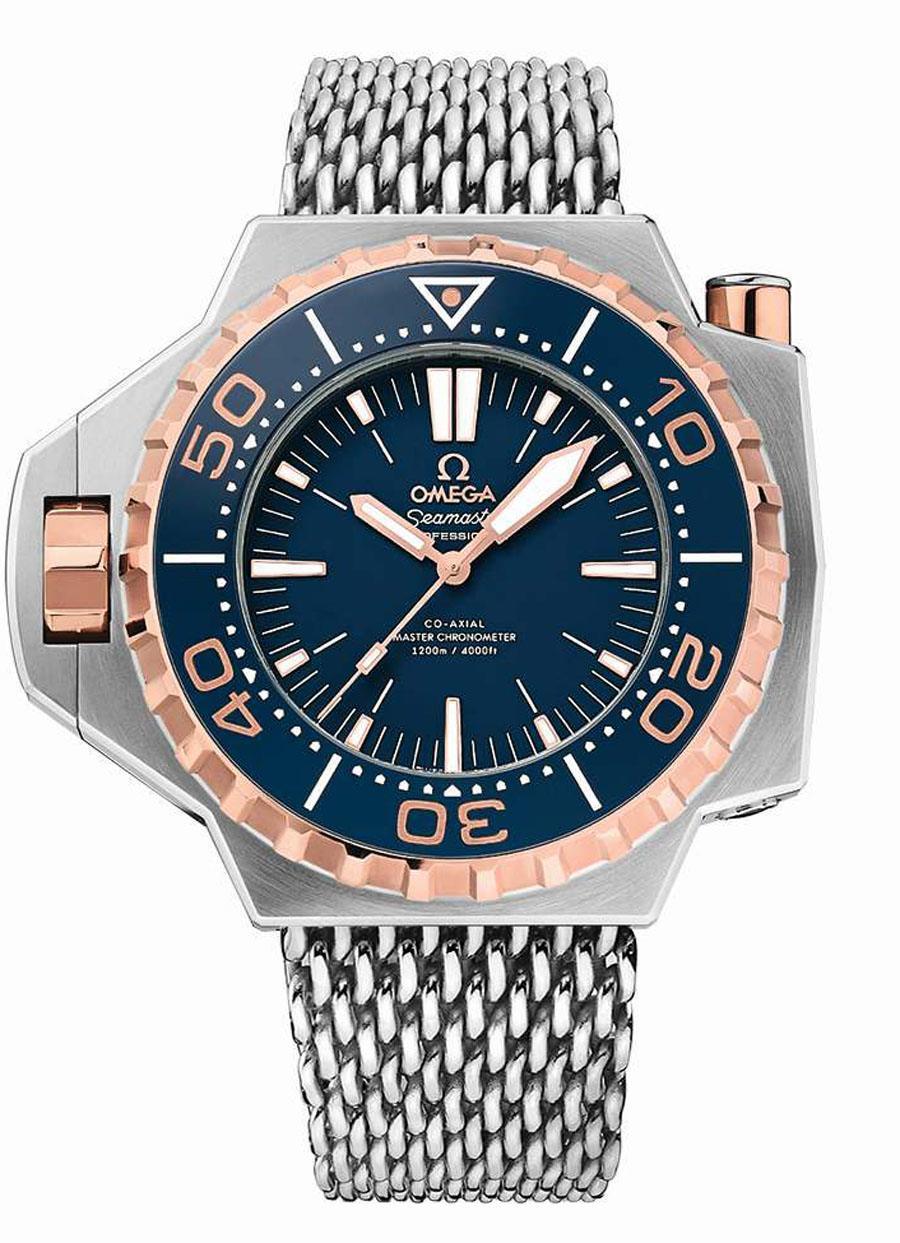 Швейцарская часовая компания Omega выпустила три новые версии своей дайверской модели Seamaster PloProf 1200M: с безелем серого цвета из нитрида кремния и с серым циферблатом; с керамическим безелем цвета синий электрик и с белым циферблатом; с керамическим безелем синего цвета с окантовкой из золота Sedna и с синим циферблатом.