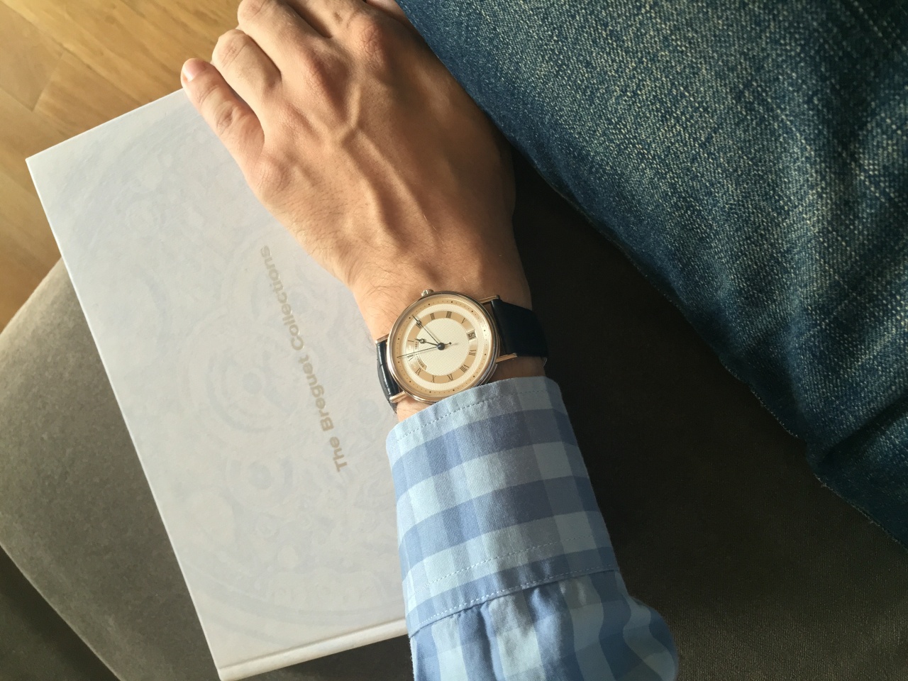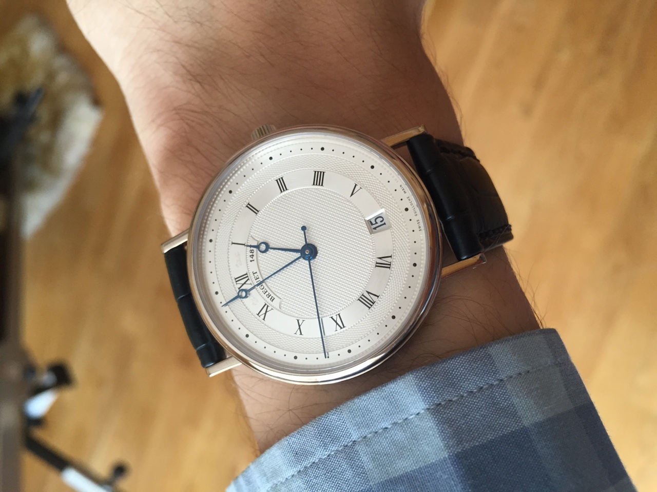 Долго и мучительно выбирал, а затем уже искал себе классические костюмные часы. Больше всего хотелось бреге - я помню, как еще в детстве ходил вдоль витрин часовых магазинов, таращился на эти бреге и думал: вот бы когда-нибудь купить :) так что любовь к вороненым синим стрелкам, гильоше и строгому классическому дизайну у меня с детства :)