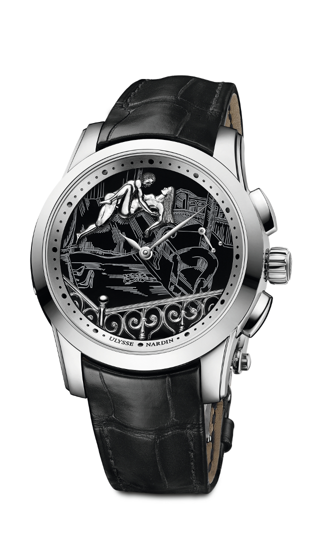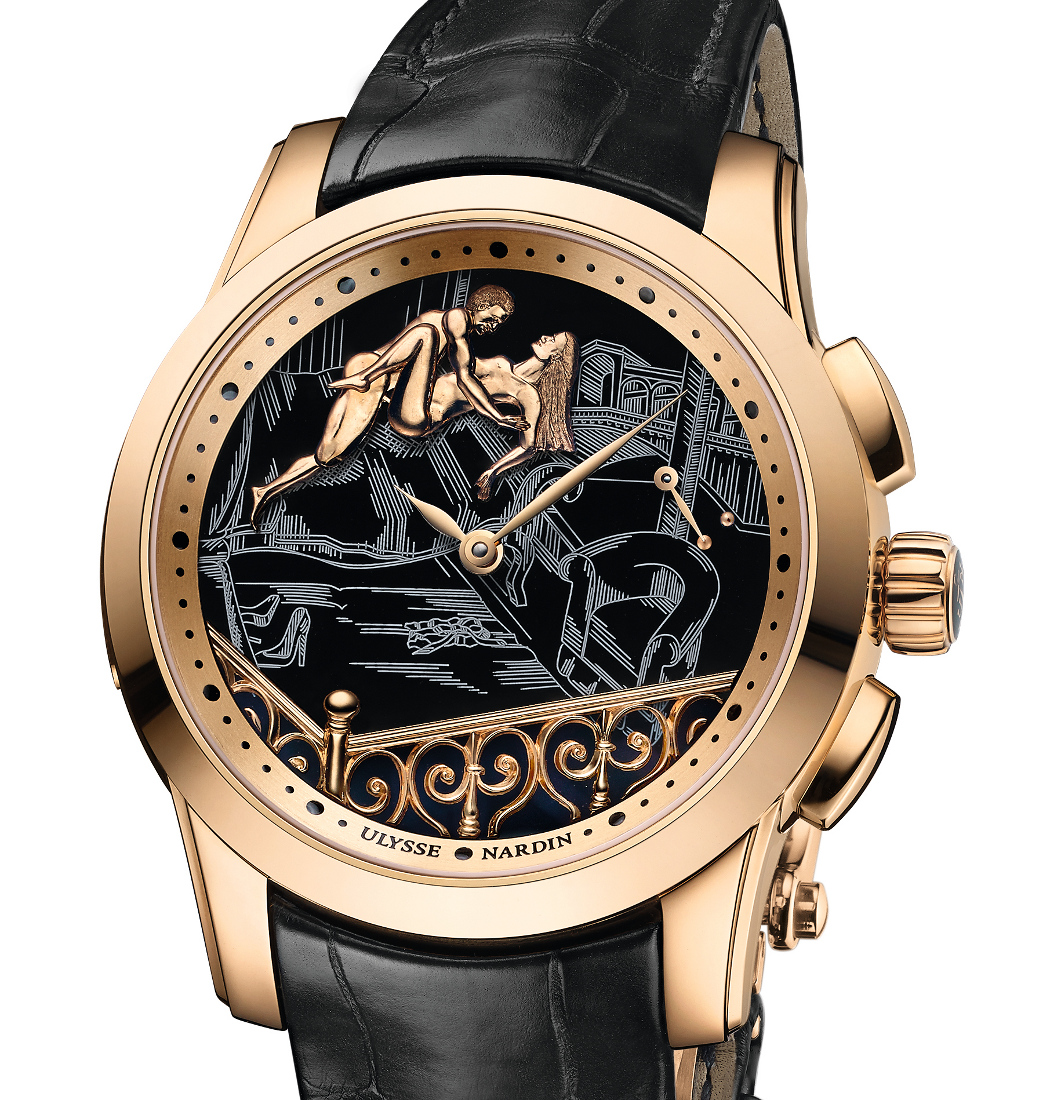 Новая лимитированная модель Hourstriker Erotica Jarretière от швейцарской часовой компании Ulysse Nardin выпущена в двух вариантах: в 18-каратном розовом золоте и в платине.