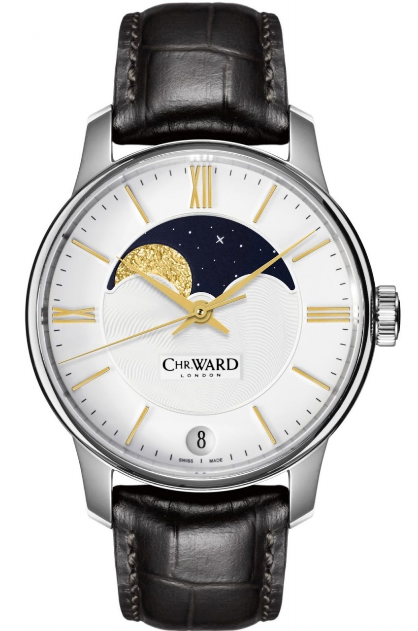 Британская часовая компания Christopher Ward, выпускающая свои часы в Швейцарии, представила свою новую модель C9 Moonphase (40mm), которая выпускается в двух вариантах: с циферблатом белого цвета с золотым PVD-покрытием часовыми индексами и стрелками, а также с циферблатом темно-синего цвета с никелированными часовыми индексами и стрелками.