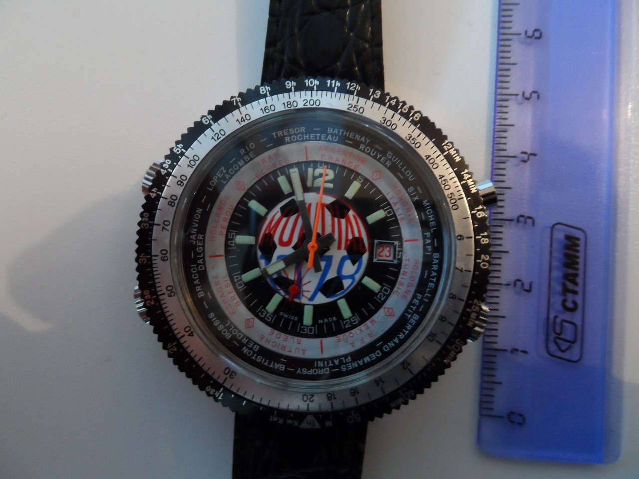 Пол: мужские Год покупки: 2014 БУ часы, состояние: AA (отличное) http://forum.watch.ru/images/market-question.png Полировка: нет Цена: 75 000 руб. (продажа) Коробка: нет Документы: нет Раритетные большие мужские часы пр-ва Швейцария. В идеальном состоянии.Из коллекции. Без признаков ношения.Часы сложные. Три вращающиеся шкалы:две под стеклом,одна снаружи. Часы сборной Франции по футболу чемпионата мира MUNDIAL 1978, под номером 0068. Механика,ручной подзавод. Цена 75 т.р. Личная встреча. Любые проверки (возможна проверка в Московском Часовом Центре). Могу отправить курьерской службой. Идёт по России 2-3 рабочих дня. Смотрите другие мои часы и ювелирные изделия. Вложение 1136488 Вложение 1136489 Вложение 1136490 Вложение 1136491 Вложение 1136492 Вложение 1136493 |