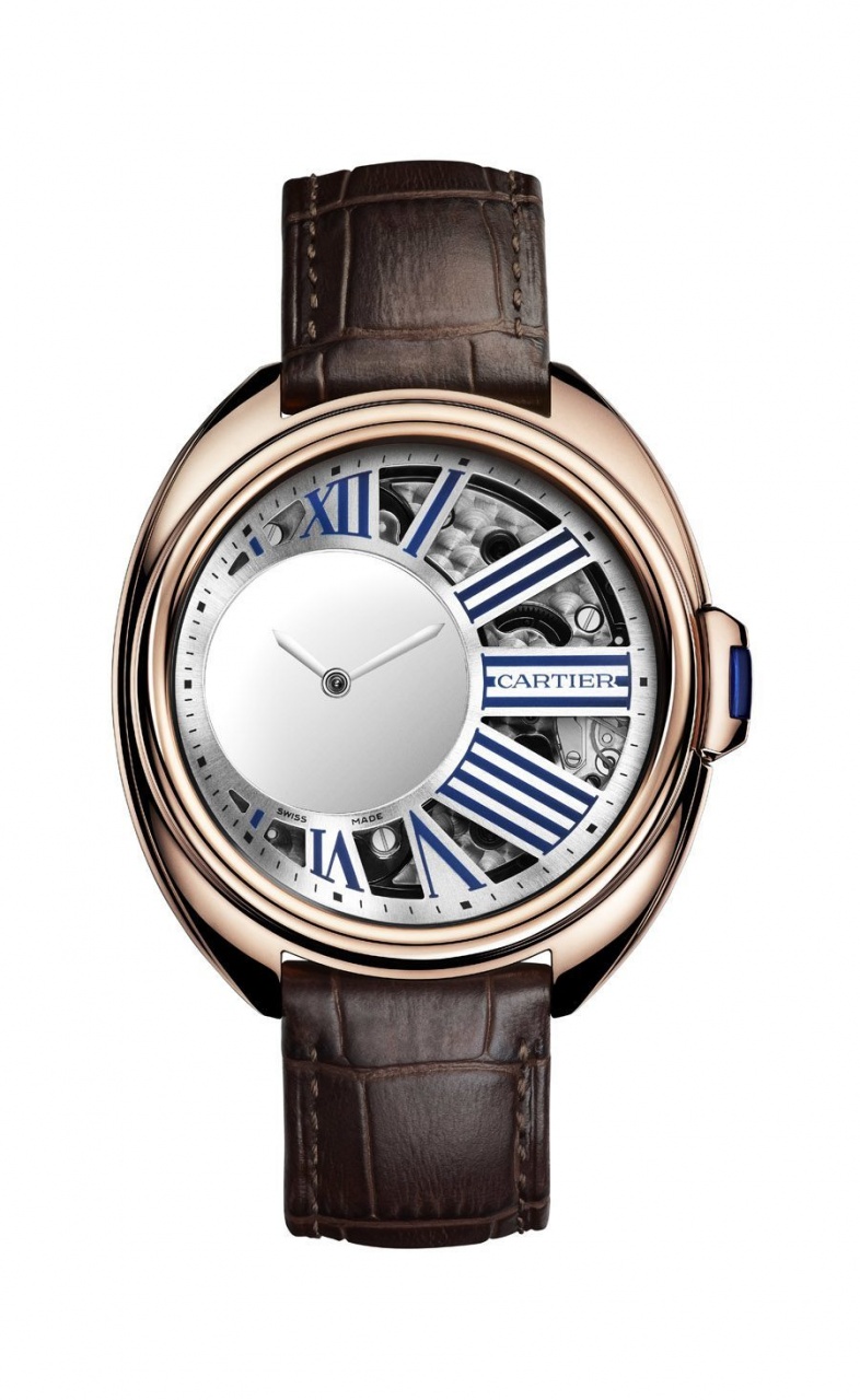 Дом Cartier пополнил свою коллекцию швейцарских часов Clé ("ключ" - название связано с формой заводной головки моделей - не круглой, а продолговатой формы, напоминающей заводной ключ, которым заводились старинные карманные часы) новой моделью Clé de Cartier Mysterious Hour.