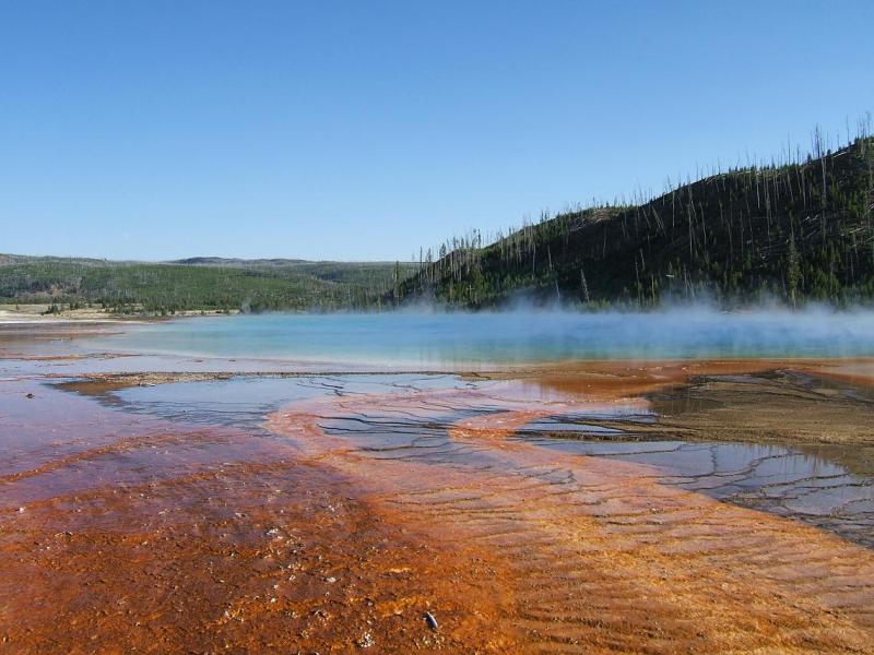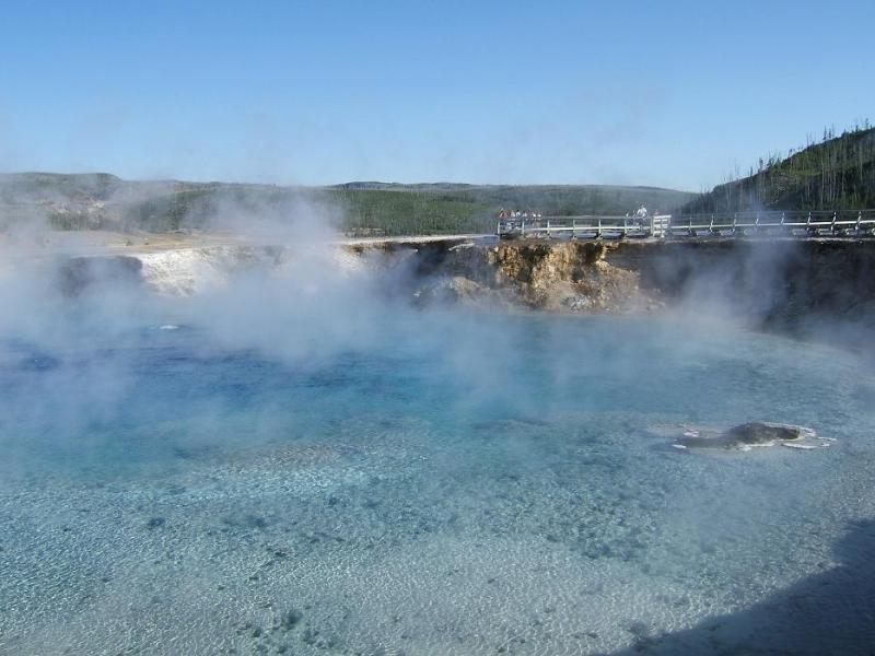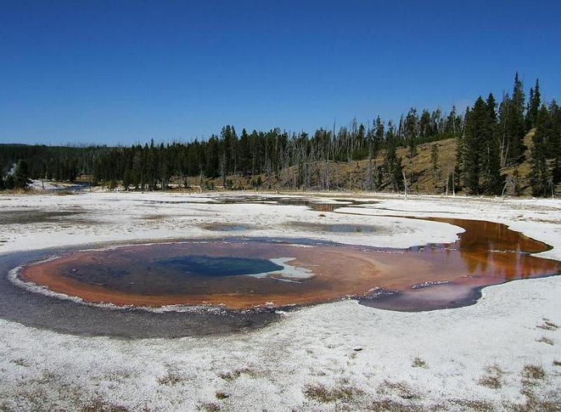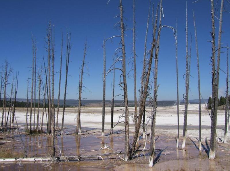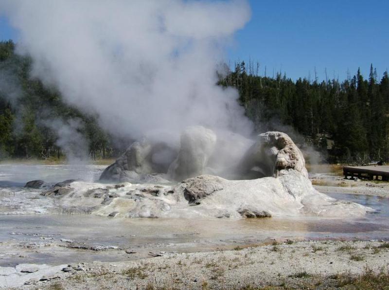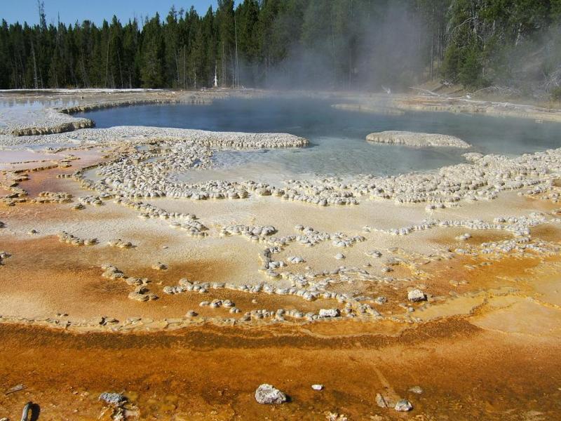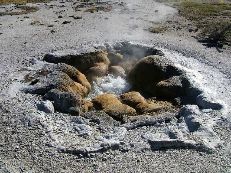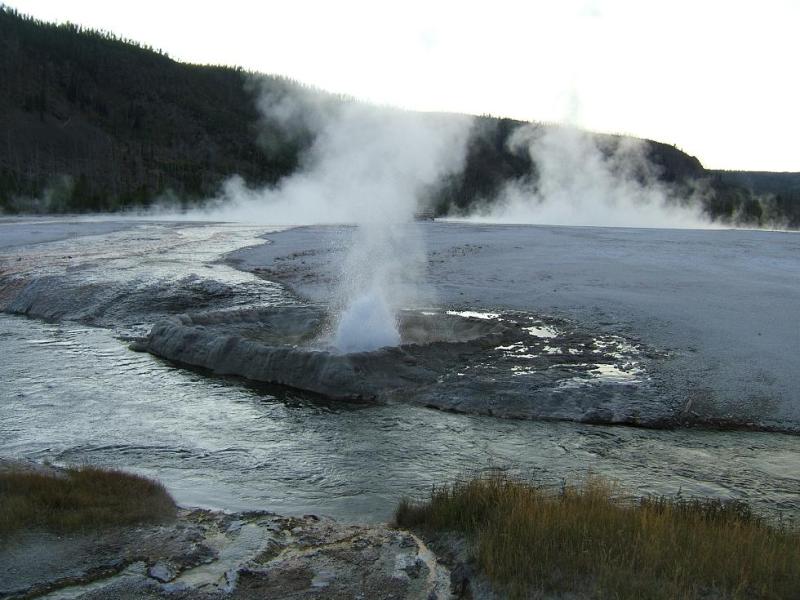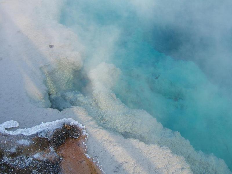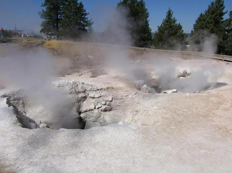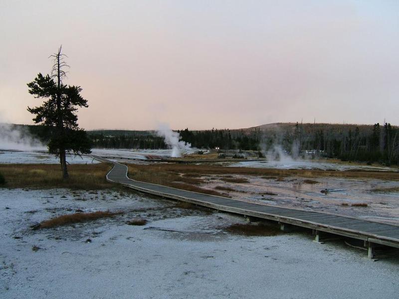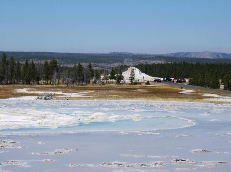 На 2-ой день добрались таки и до гейзеров. Точек сосредоточения гейзеров там несколько (американцы называют basin), но сейчас для меня они уже слились в одну череду. Даже,как говорят, самый большой в мире гейзер Пароход (Steamboat Geyser) не смог на фотках опознать. Что наверное и не удивительно т.к. он спал и просыпаться не собирался (там вият таблички с расписанием возможной активности).