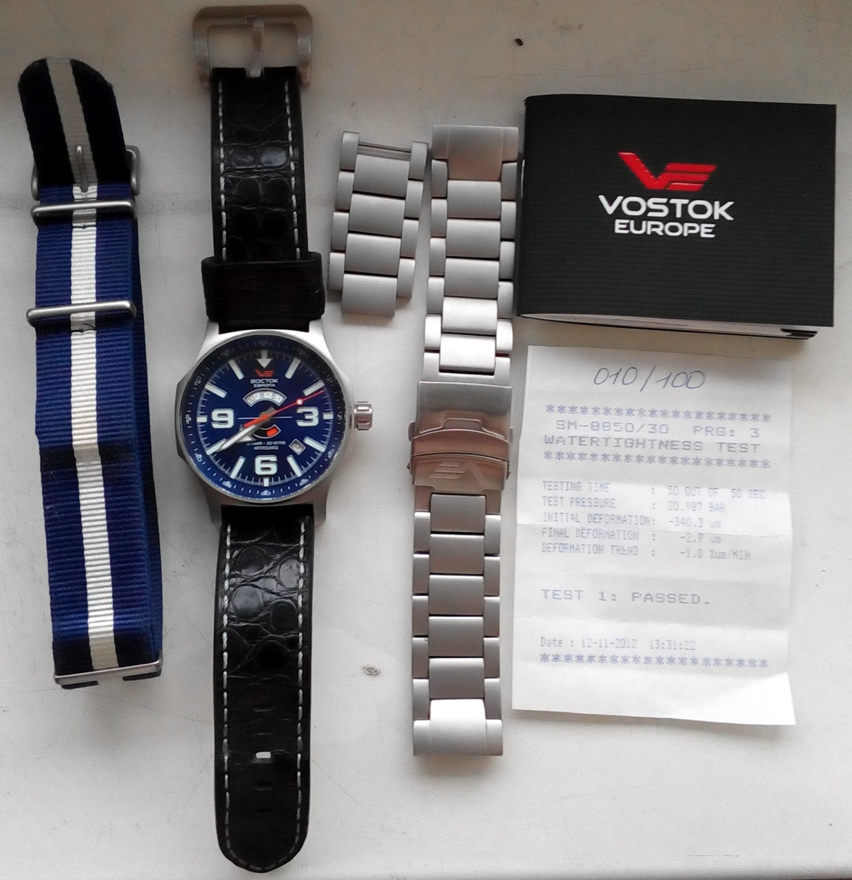 Пол: мужские Год покупки: 2013 БУ часы, состояние: A (хорошее) http://forum.watch.ru/images/market-question.png Полировка: нет Цена: 22 000 руб. (продажа) Коробка: есть Документы: есть Вложение 1151742 Вложение 1151743 Вложение 1151744 Вложение 1151745 Форумная лимитка. Выпущено 100 экземпляров. Отличия от обычных серийных часов - темно-синий (Navy) циферблат, все надписи на часах на русском языке, на роторе автоподзавода логотип форума, гравировка на задней крышке. Механизм: Восток 2432 (32 камня) с 24х часовым индикатором и указателем день/ночь. Корпус: нерж. сталь без покрытия, матовая, диаметр 47 мм, толщина порядка 16 мм. Стекло: упрочненное стекло типа К1 диаметром 43 мм и толщиной 4 мм. Покрытие стрелок и меток «СуперЛюминова» Водонепроницаемость: 200 метров Заводная головка завинчивается. В комплекте часы, коробка, ремень-стропа, стальной литой браслет, бело-синий кожаный родной браслет. Сейчас на часах заказной ремень ручной работы из крокодила под запястье около 17 см. Паспорт часов, протокол испытаний на герметичность. Состояние хорошее, носились редко. Отрываю от сердца, деньги нужны. Пересылка по РФ. |