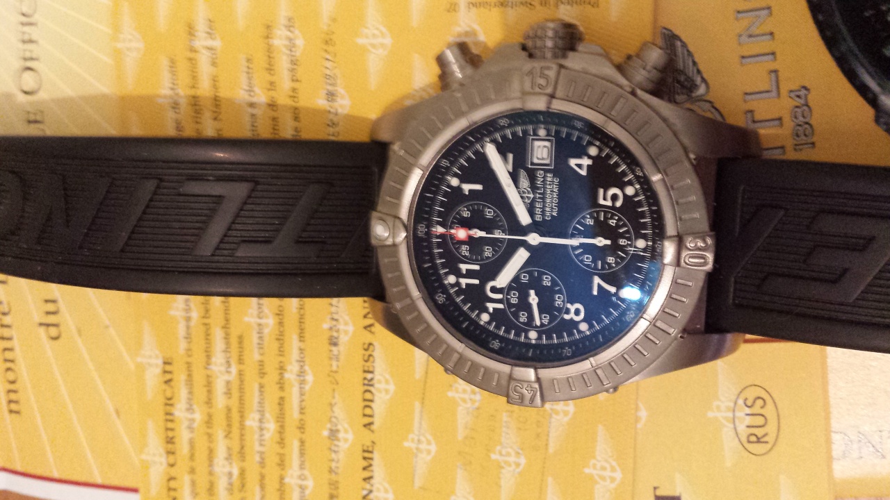 Пол: мужские Год покупки: не указано БУ часы, состояние: A (хорошее) http://forum.watch.ru/images/market-question.png Полировка: да, делалась Цена: 2 200 USD (продажа) Коробка: есть Документы: есть Тип механизма: механический с автоподзаводом Калибр: Breitling 13 (базовый ETA Калибр 7750), хронометр сертифицирован C.O.S.C Корпус: титан Циферблат: чёрный Водозащита: 300 метров Подсветка: люминесцентные стрелки и метки Сапфировое стекло с антибликовым покрытием с двух сторон Календарь: число Габаритные размеры: D 44мм, толщина 17,6м часам сделан репассаж, полировка, ремень в хорошем состоянии, есть небольшой скольчик на стекле, больше дефектов нет. возможен обмен с доплатой в обе стороны Вложение 1159868Вложение 1159869Вложение 1159870 Вложение 1159871Вложение 1159872Вложение 1159873 Вложение 1159874Вложение 1159875 |
