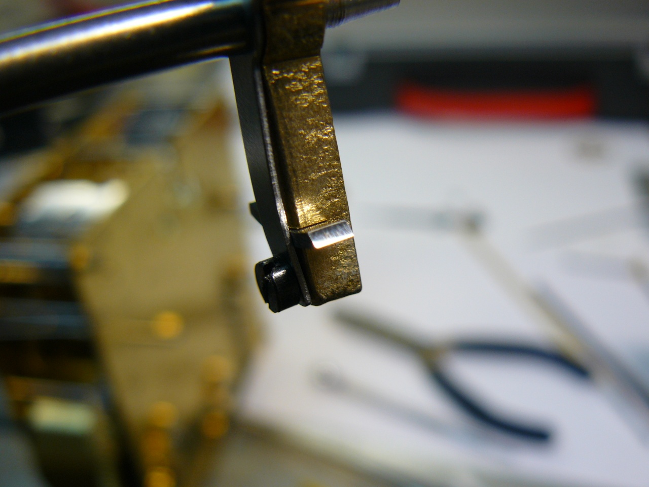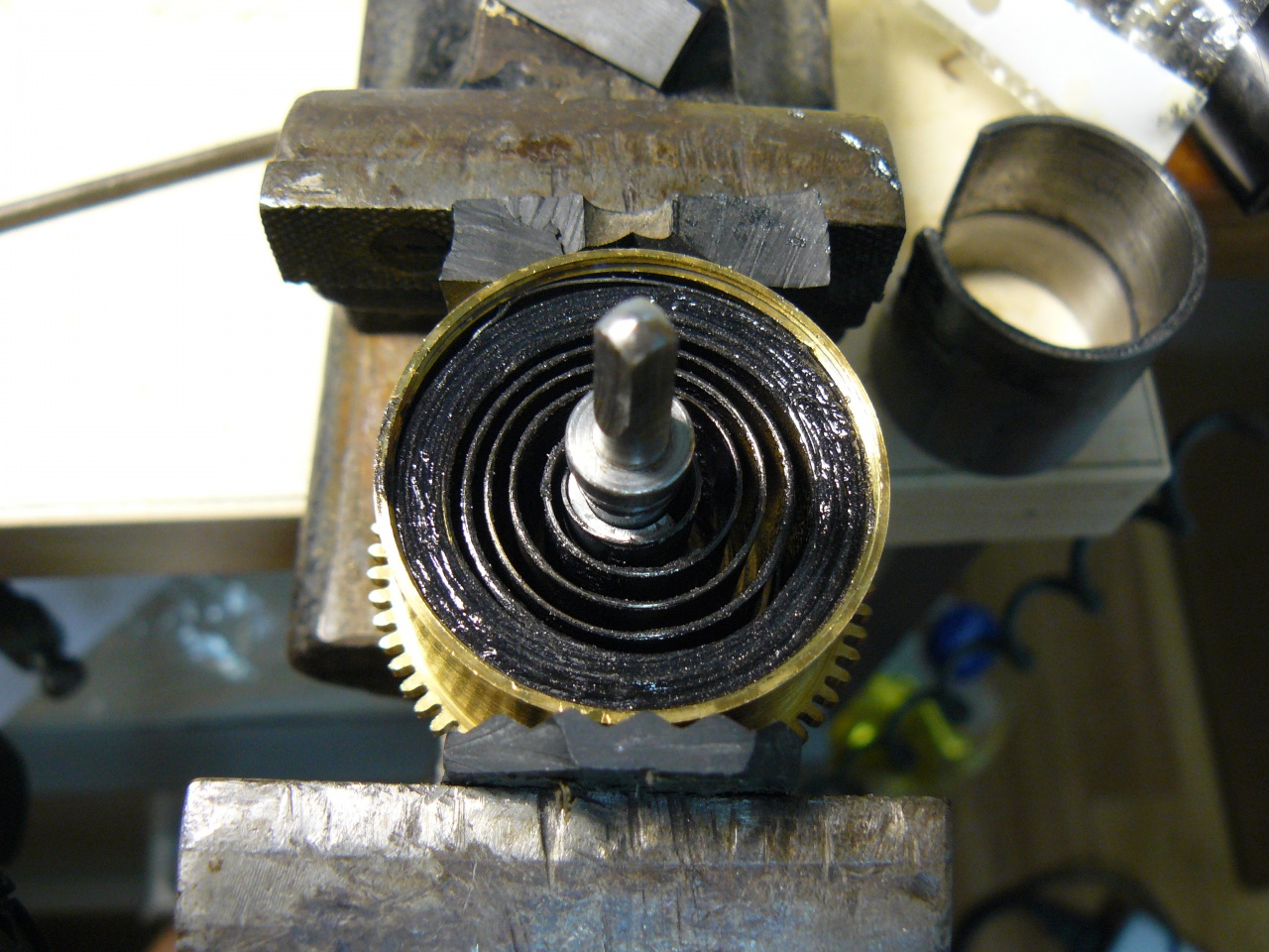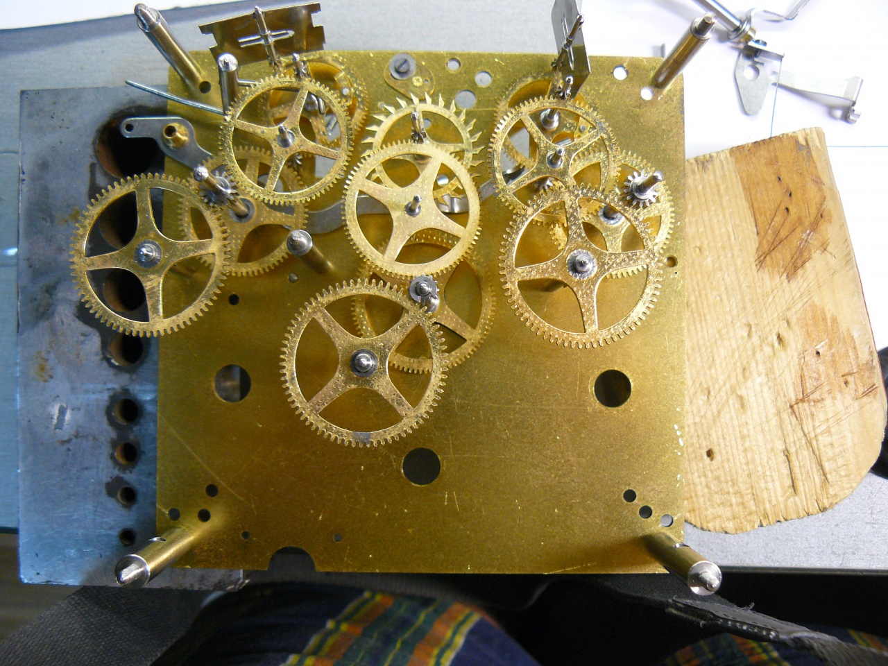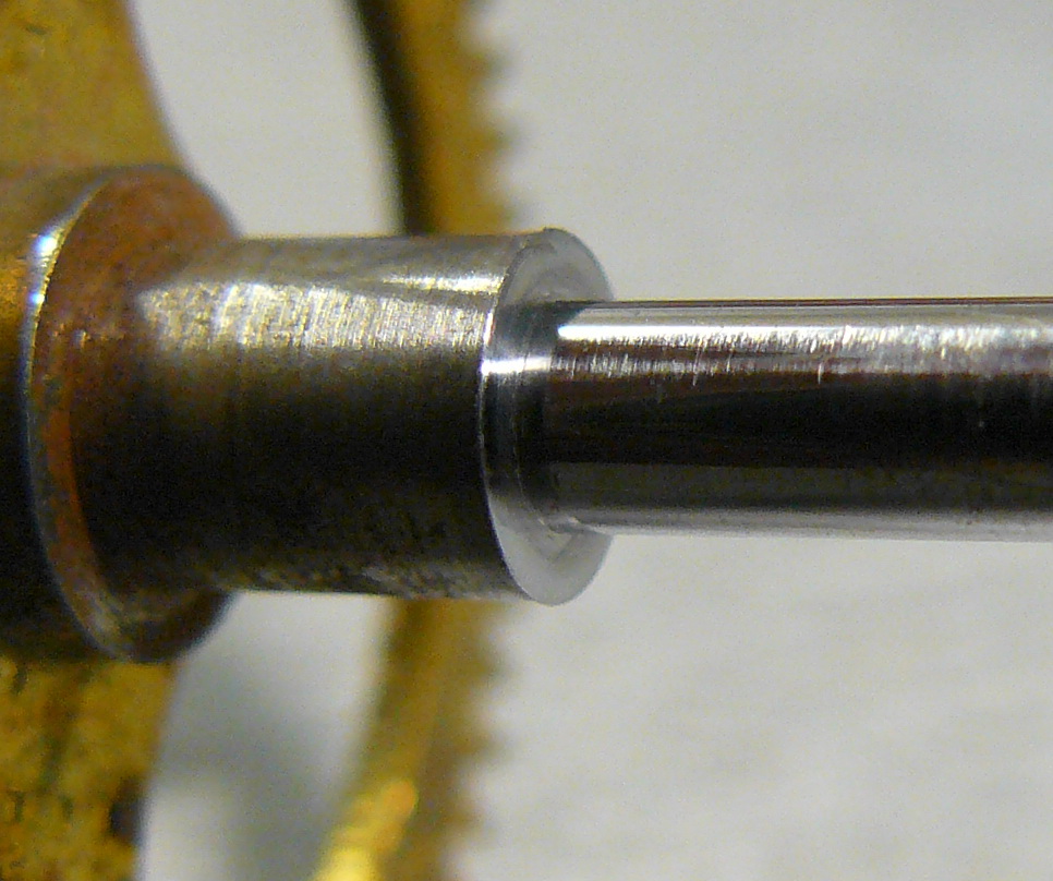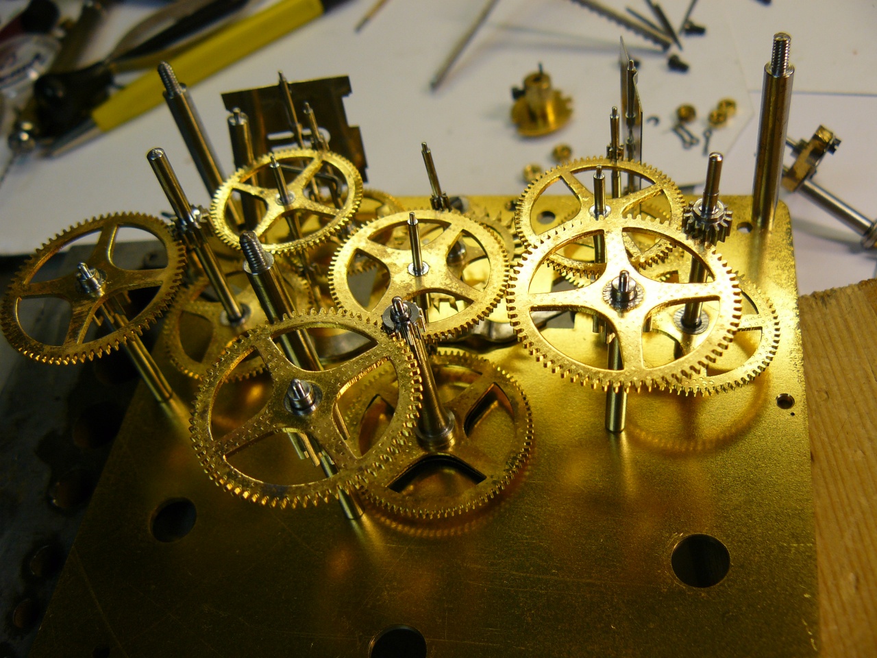купил почти год назад, и на тот момент мне захотелось чего-то именно настенно-четвертного, так получилось, что кроме моих домашних четвертных ОЧЗ, настенных четвертных у меня не было, и поэтому решил купить еще одни, чтобы заменяли мне мои ОЧЗ в Киеве ну и конечно с дизайном Ар Деко, что я так люблю изначально состояние было не "дрова", но корпусу требовался косметический ремонт, а механизму - репассаж, хоть он и был полностью рабочий Вложение 1169580Вложение 1169581Вложение 1169582Вложение 1169583Вложение 1169584Вложение 1169585 с помощью смывки и наждачки очистил корпус от старого покрытия Вложение 1169586Вложение 1169587 покрывал сначала морилкой Belinka Toplazur, потом полуматовым аэрозольным лаком на полиуретановой основе Rust Oleum здесь дверка покрыта морилкой, сохнет, еще не покрыта лаком Вложение 1169588Вложение 1169589 теперь к внутренностям гонги - просто великолепны, вороненые стальные стержни максимальной длины 47см (что и для напольников будет немало), французы вообще предпочитали сталь бронзе в гонгах Вложение 1169590Вложение 1169591 механизм разобрал, и когда слегка отмыл от грязи колеса, был неприятно удивлен качеством обработки цапф и трибов пришлось их полировать на импровизированном Jacot-станке (только не смейтесь) Вложение 1169592 "до" ----------------- "после" Вложение 1169593Вложение 1169594 Вложение 1169595Вложение 1169596 Вложение 1169597Вложение 1169598Вложение 1169599 Вложение 1169600Вложение 1169601 Вложение 1169602Вложение 1169603 и еще несколько отполированных цапф, которые я забыл сфотографировать до полировки Вложение 1169604Вложение 1169605Вложение 1169606Вложение 1169607Вложение 1169608 некоторые трибы тоже поражали, точнее - ужасали, качеством обработки, даже не знаю какой инструмент на такое способен Вложение 1169609Вложение 1169610Вложение 1169611 пришлось их полировать и заусенцы убирать минутный фрикцион расположен в самом центральном колесе Вложение 1169612Вложение 1169613 несмотря на обработку цапф, ставить футора пришлось только в 2 отверстия один - на переднюю цапфу недельного колеса четверти Вложение 1169614Вложение 1169615 а необходимость ставить второй футор я обнаружил только при финальной сборке механизма, дело в том, что цапфа не выступала за край отверстия платины, и с внешней стороны отверстие выглядело ok пришлось все опять разбирать, ставить футор, мыть и второй раз собирать платины средней толщины (1,9-2мм) и приятно обработаны - фасочки почти на каждом отверстии Вложение 1169616 платины скрепляются пятью колонками Вложение 1169617 барабаны быстросъемные, причем вал цельный и достается целиком из барабана Вложение 1169618Вложение 1169619 |