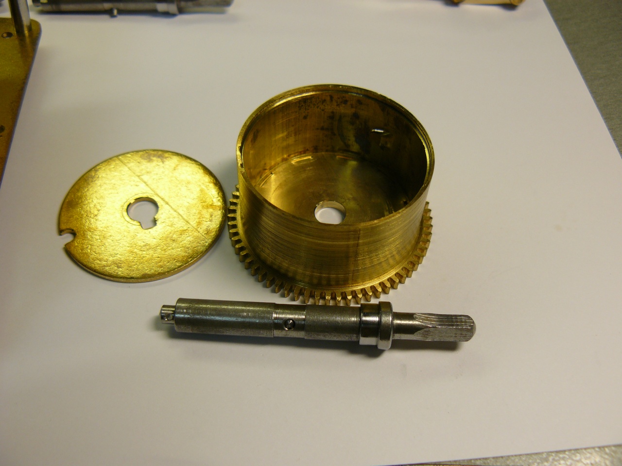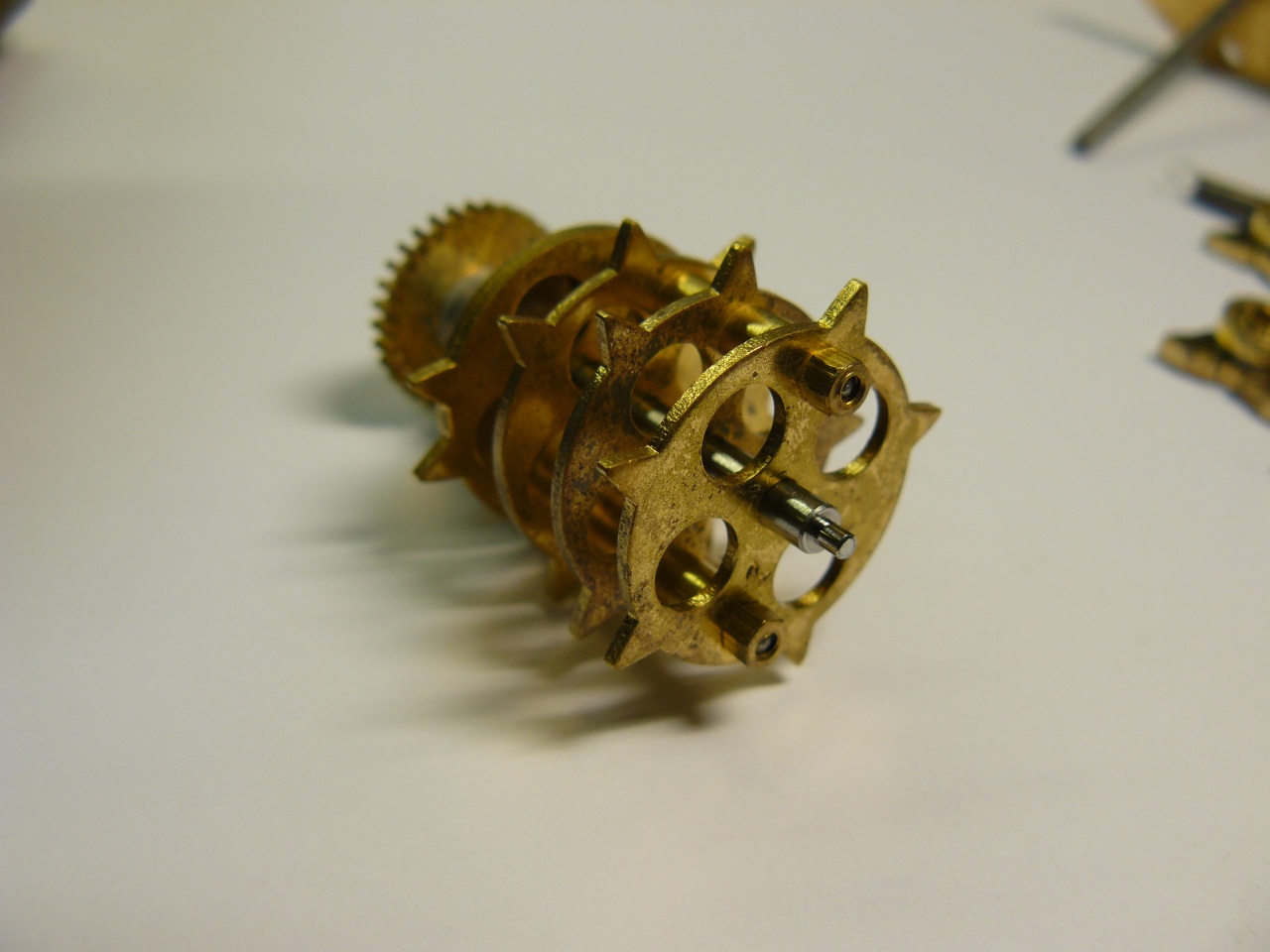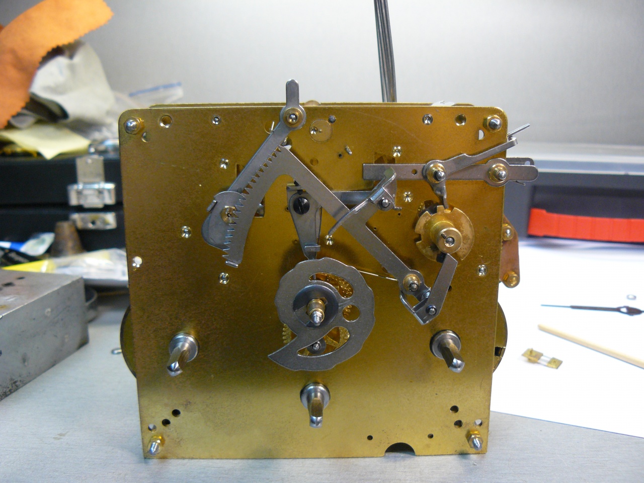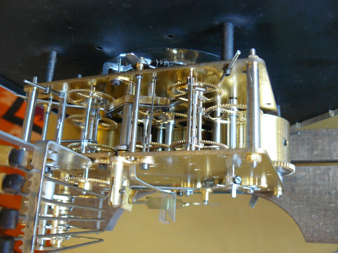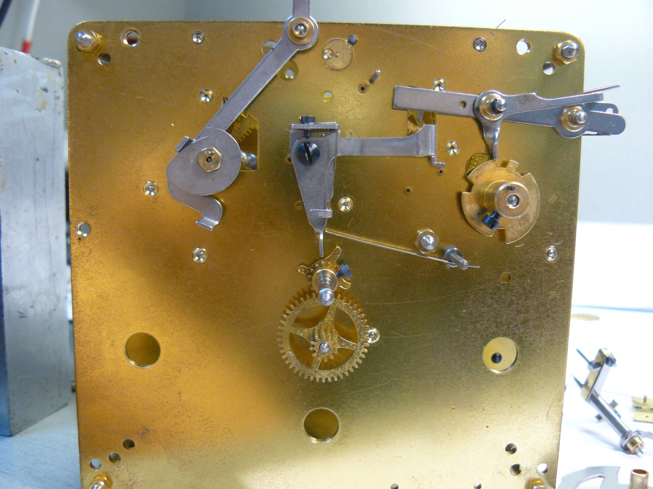 Вложение 1169620 пружина смазана графитовой смазкой Вложение 1169621 игральный вал и блок молоточков в сборе Вложение 1169622Вложение 1169623Вложение 1169624 необычно выполнено часовое колесо с улиткой - улитка закреплена на оси колеса фрикционно, и имеет два паза под выступы футора часовой стрелки при провороте часовой стрелки проворачивается и улитка Вложение 1169625Вложение 1169626Вложение 1169627 это гарантирует, что количество ударов боя будет всегда соответствовать показаниям часовой стрелки (часовую стрелку можно подвести отдельно от минутной, чтобы долго не мотать стрелки) сборка Вложение 1169628Вложение 1169629Вложение 1169630 схема четвертного боя тоже выполнена отлично от немецкой схемы Вложение 1169631Вложение 1169632Вложение 1169633 счетное колесо четвертного боя имеет кулачок активации часового боя там, где у немецких счетных колес расположен кулачок автокоррекции а автокоррекция до гениального проста - за нее отвечает один длинный зуб на кулачке минутного триба и один высокий выступ на счетном колесе Вложение 1169634 штифт на футоре счетного колеса нужен для плавного бесшумного опускания гребенки на улитку - еще одно интересное французское новшество Вложение 1169635 как это работает: [media]https://www.youtube.com/watch?feature=player_detailpage&v=ERViyLJPa-I[/media] механизм оснащен ходом Грахама с регулируемыми палетами, и эта деталь сделана просто отлично, мне ничего не пришлось делать с ней, полировка палет превосходная, и намека на износ нет Вложение 1169636Вложение 1169637Вложение 1169638Вложение 1169639Вложение 1169640 цифра 37 - длина маятника в см мост анкерной скобы не регулируется по высоте, вместо этого на передней платине есть эксцентричный футор с контрвинтом Вложение 1169641 скоба имеет штифт, ограничивающий ее ход Вложение 1169642 храповики на задней платине - фирменная черта всех механизмов Vedette Вложение 1169643 для транспортировки в корпусе предусмотрено все: поводок маятника фиксируется скобой Вложение 1169644 для стержней гонга есть металлическая пластина с отверстиями, фиксирующаяся к задней стенке Вложение 1169645 сам маятник фиксируется крючком на боковой стенке и колечком с пружиной абсолютно надежно Вложение 1169646 оторвавшиеся накладки для фиксирующих корпус винтов я вместо гвоздиков прикрутил латунными винтами Вложение 1169647 механизм после репассажа Вложение 1169648Вложение 1169649Вложение 1169650Вложение 1169651 6 47 - возможно дата выпуска Июнь 47 года (кто знает, может качество обработки цапф и трибов объясняется трудными послевоенными годами:confused:) Вложение 1169652 стержни расположены в корпусе наклонно, не знаю зачем, но это точно заводское крепление, т.к. других отверстий в стенке нет Вложение 1169653 итак, результат трудов: Вложение 1169654Вложение 1169655Вложение 1169656Вложение 1169657Вложение 1169658Вложение 1169659 бой: [media]https://www.youtube.com/watch?feature=player_detailpage&v=cvUaMOeZp5E[/media] кстати, из всех моих механических часов они самые точные - меньше 20 секунд в неделю, отличный изохронизм видимо это заслуга длинного (в сравнении с каминками) маятника и хода Грахама |