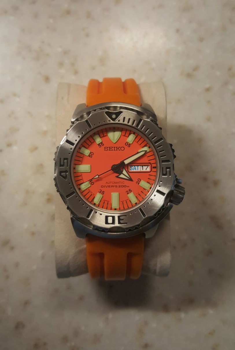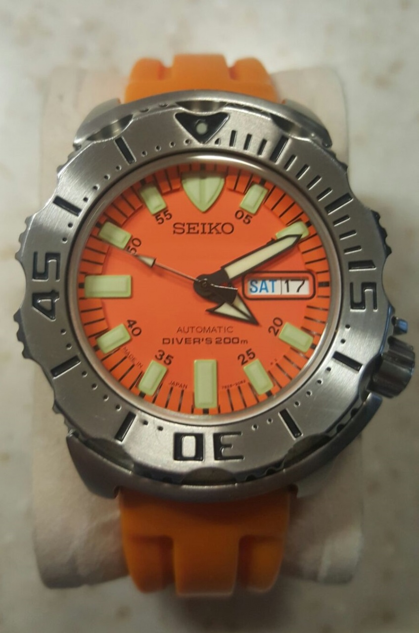 Seiko SKX781 Оранжевый Монстр Вложений: 4 Seiko - SKX781 Пол: мужские Год покупки: не указано БУ часы, состояние: A (хорошее) http://forum.watch.ru/images/market-question.png Полировка: нет Цена: 9 999 руб. (продажа) Коробка: нет Документы: нет Продаю оранжевый монстр. С покупкой астрона совсем без дела лежит. Так что отдам в хорошие руки. Состояние отличное, видимых следов носки нет. Стекло "чистое". Браслета нет. Водонепроницаемость 200 м. Механизм 7S26 с автоподзаводом и запасом хода до 42 часов. Диаметр: 42 мм Индикация дня недели и даты Люм очень яркий! Корпус из нержавеющей стали Однонаправленный поворотный безель и завинчивающаяся завинчивающаяся заводная головка. Отправлю в любой регион. Пересылка 1ым классом за мой счет. Вложение 1177274 Вложение 1177275 Вложение 1177276 Вложение 1177277 |