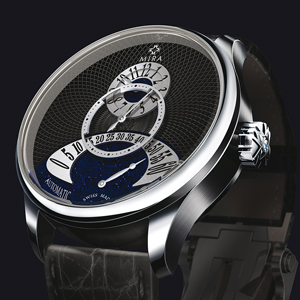 Звезда, которая получила свое название Мира (Mira) в 1662 году, дала свое имя часовому бренду в 1896 году - бренду, который известен тем, что представил двусторонний ротор в 1940-х годах. Переменная звезда Mira ярко засветилась вновь после долгого затмения. Ее возрождение было связано с сизигием - расположением небесных тел на одной гравитационной оси. Это использовано в дизайне циферблата модели Space Sensation, когда на его вертикальной оси размещаются (снизу-вверх) стрелки: ретроградная минутная , маленькая секундная и часовая. Логотип Mira занимает почетное место на самой верхней части циферблата.