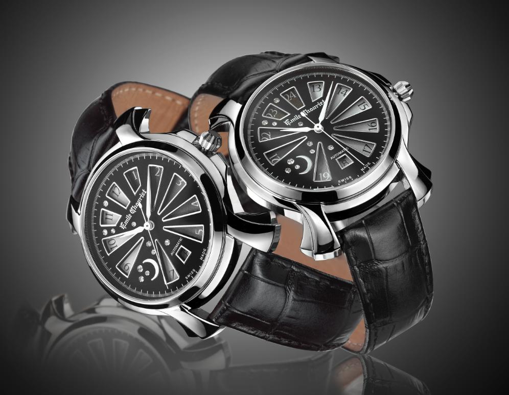 Модель Catch the Moon от Emile Chouriet содержит первое усложнение в часах бренда, которое им было самостоятельно разработано и произведено. Два года были необходимы для разработки этой модели с двойным дисплеем времени - от 1 до 12 am и с 1 до 12 pm - на секционном циферблате.