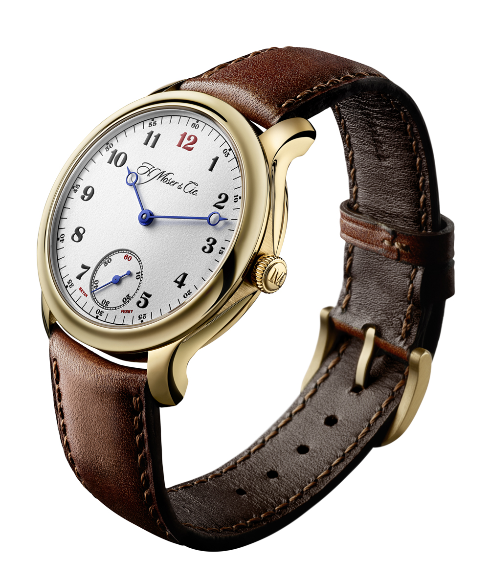 Круглый полированный корпус новинки, изготовленный из 18-каратного розового золота, диаметром 38,8 мм, толщиной 9,3 мм. На торце рифленой заводной головки, расположенной на 3 часах, выгравировано изображение логотипа бренда H. Moser & Cie - буква "М". Сапфировое стекло установлено на передней стороне часового корпуса (выпуклое, с антибликовым покрытием) и на его завинчивающейся задней крышке. Матово-белый лаковый циферблат, с напечатанными арабскими цифрами (число "12" красного цвета, а остальные - черного) и воронеными стрелками (в том числе часовая и минутная с "яблоками Бреге").