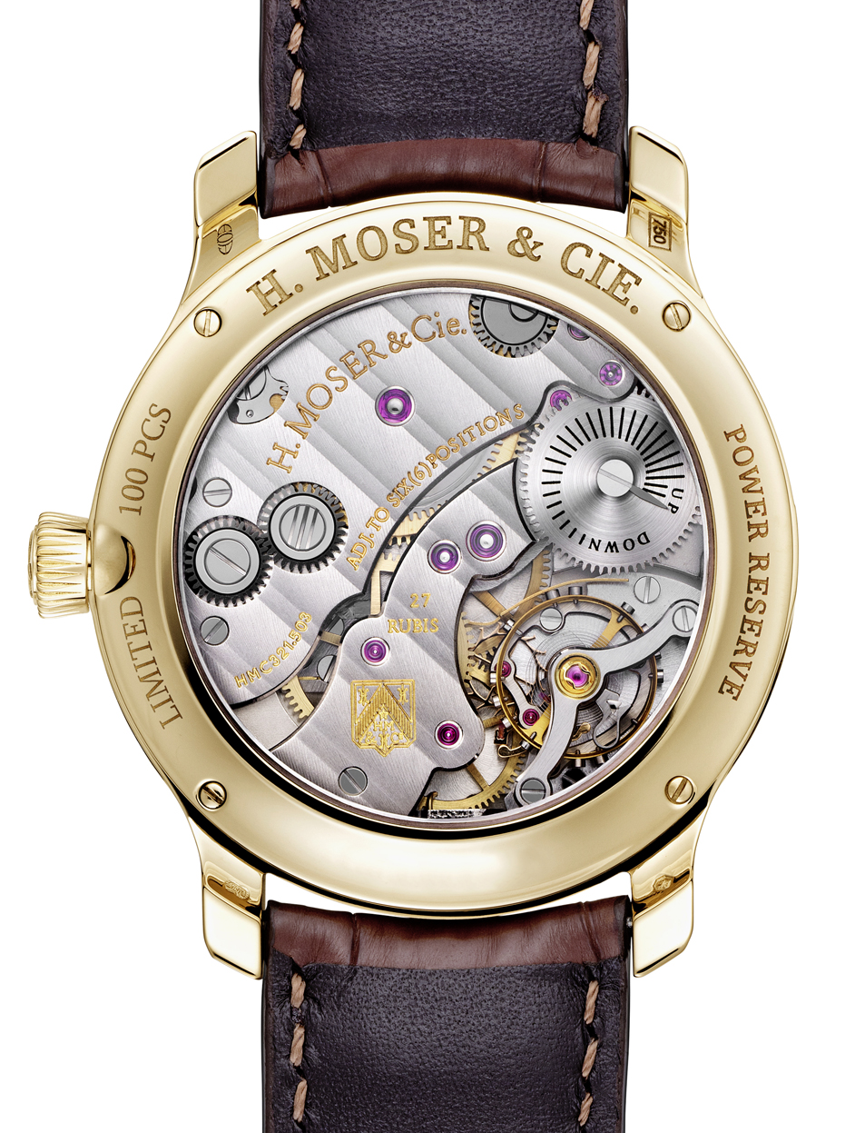 Модель оснащена мануфактурным швейцарским механизмом с ручным заводом H. Moser & Cie HMC 321, на 27 камнях, с балансовой частотой 18000 полуколебаний в час (2,5 гц), трехдневным запасом хода, модулем регулятора хода со спиралью Original Straumann Hairspring®, с функциями индикации часов, минут (посредством соответствующих центральных стрелок), секунд (на соответствующем малом боковом циферблате, расположенном на 6 часах) и запаса хода (посредством соответствующего круглого аналогового указателя, расположенного на задней стороне механизма и просматриваемого через сапфировое стекло на задней крышке часового корпуса).