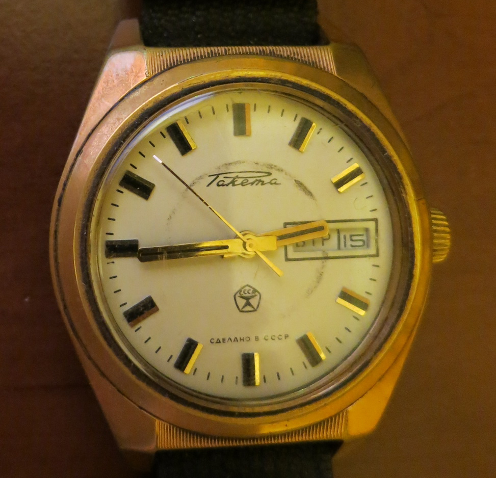 Планирую восстанавливать такую по семейному переданную мне "Ракету". Часы весьма симпатичные и на ходу, механизм требует лишь очевидного для длительного вылёживания репассажа. Всё и снаружи моется-чистится, уже и ясно, что за ремень в ретро-стиле это всё ждёт. :) Однако с циферблатом не всё ладно - он пострадал от не вполне верной установки его самого или стрелки. На фото видна круговая царапина. Поскольку доволен буду если только увижу часы в будто новом состоянии, хотелось бы довести циферблат до соответствующего безупречного вида. Вот не уверен, что есть такие технологии в часовосстановлении, которые позволили бы перепечатать циферблат на имеющейся пластинке с рельефными метками (подскажите, знатоки, можно ли?!). Актуален более всего вопрос замены, конечно. Не знаю, насколько запчасть такая редка. Ну тут уж обрадуюсь предложению где-то взять (купить) циферблат оттуда, где такие запчасти водятся. А знак качества ведь тоже лучше чтобы на сменном циферблате был... Так что же делать? Вложение 1212284 Вложение 1212285 |