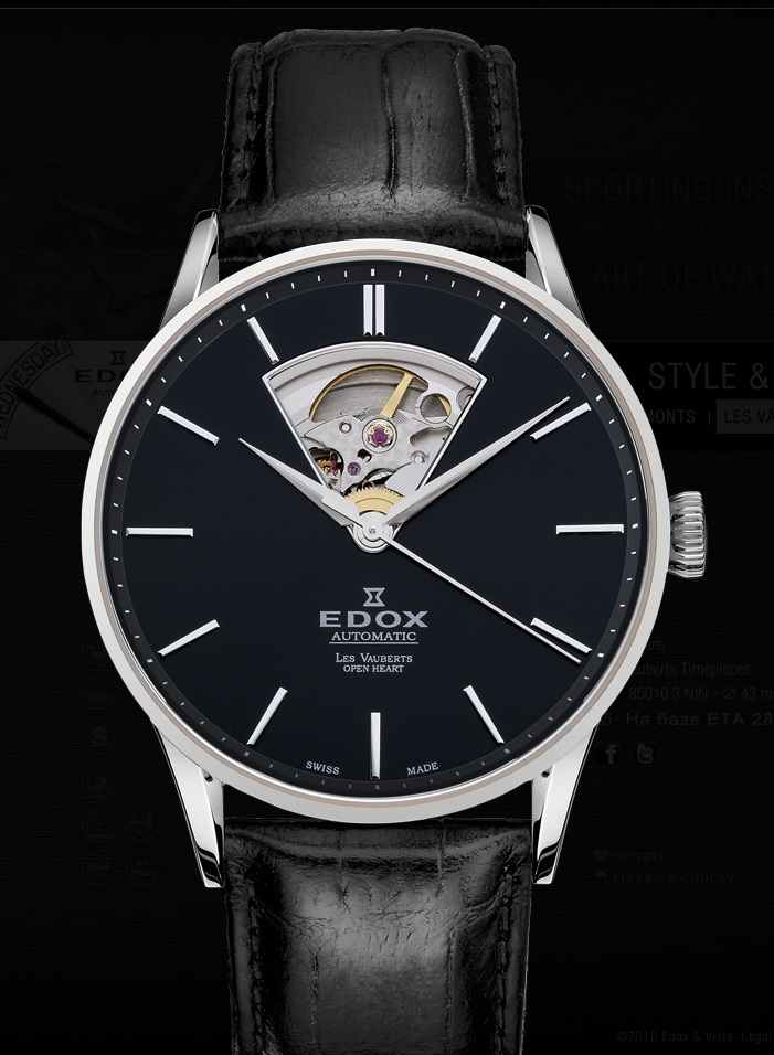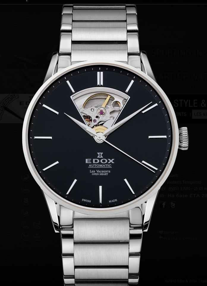 Редкая классика Edox Les Vauberts Automatic Open Heart 85011 3N NIN