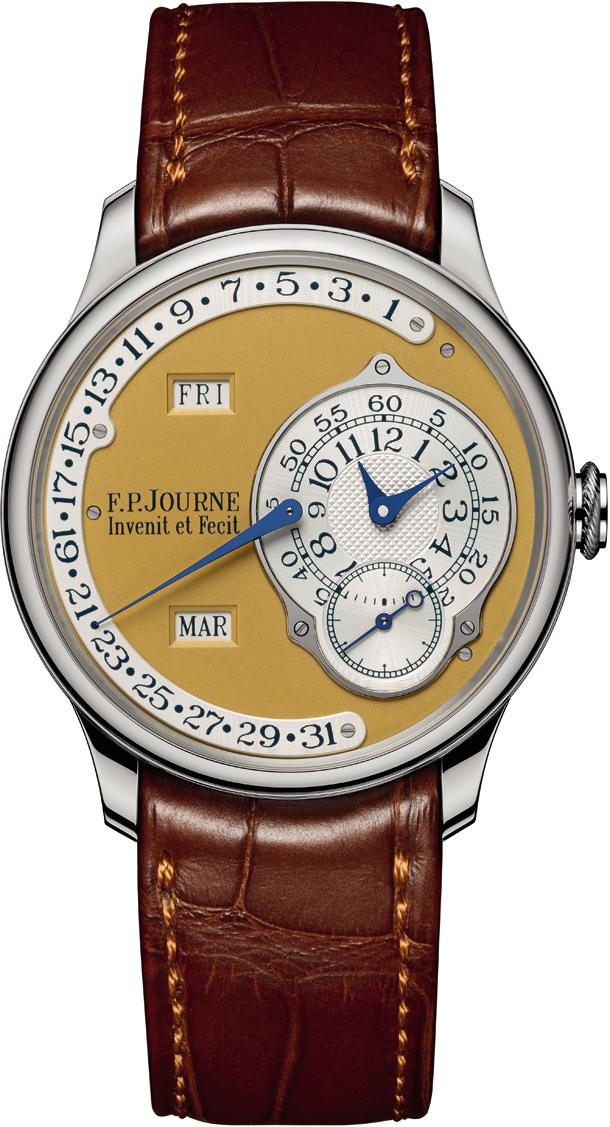 В 1991 году Франсуа-Поль Журн представил свои первые наручные часы на выставке BaselWorld в платиновом корпусе диаметром 38 мм. Это было неслыханно во времена, когда размеры часов колебались между 33 и 36 мм. Теперь, желая отпраздновать окончание исторической эпохи часов с корпусами диаметром 38 мм после 25 лет существования, F.P.Journe создали 38 эксклюзивных коллекционных комплектов из 5 символических культовых моделей шириной 38 мм.
