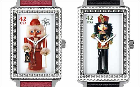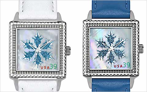На циферблатах этих часов нанесены изображения, стилизованные или воспроизводящие изображения старых почтовых марок. Есть на них Санта Клаусы, праздничные графики и много-много снежинок. Причем это репринты самых настоящих американских снежинок, сфотографированных Кеннетом Либрехтом в разных концах страны, например, есть изображения снежинок из Аляски, а есть из Онтарио. Коллекция выполнена в трех форматах круглые, квадратные часы и прямоугольные часы. Циферблат с голубым алмазным напылением покрыт полированным стальным корпусом. Цена на эти часы колеблется от 90 до 100 долларов. Вложение 37182 Вложение 37183 Источник: http://www.stylemania.km.ru/19608 |