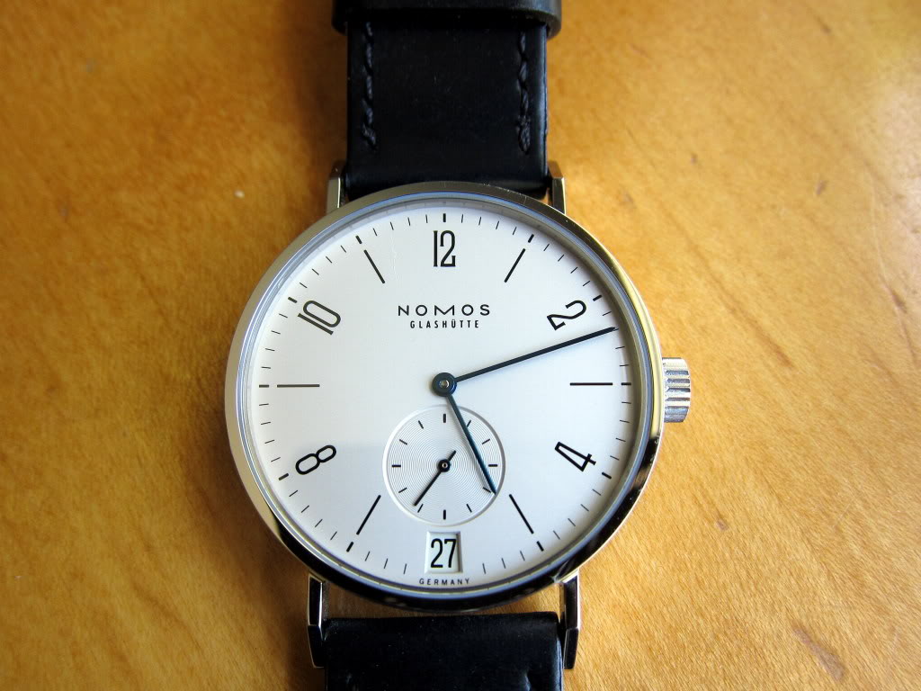 http://i.siteapi.org/RfaOBwyuPl7WRfp...7139918b4b.jpg На мой взгляд великолепное решение белого циферблата и вороненых стрелок в архитектурном минималистичном ключе. Просто часы как таковые, вне времени. Я сильно запал на них, но пропорции корпуса при толщине 13мм ни в какие ворота. При таком циферблате корпус должен быть в два раза тоньше, да и зг слегка выбивается из стиля. Но всё равно выглядят очень и очень неплохо. Запросто составят конкуренцию Номосу, особенно цене 400 долларов. По поводу механизма есть некоторые отзывы, что он не слишком точный и капризный. В механизмах я не копенгаген, но зерно сомнения посеяно. |