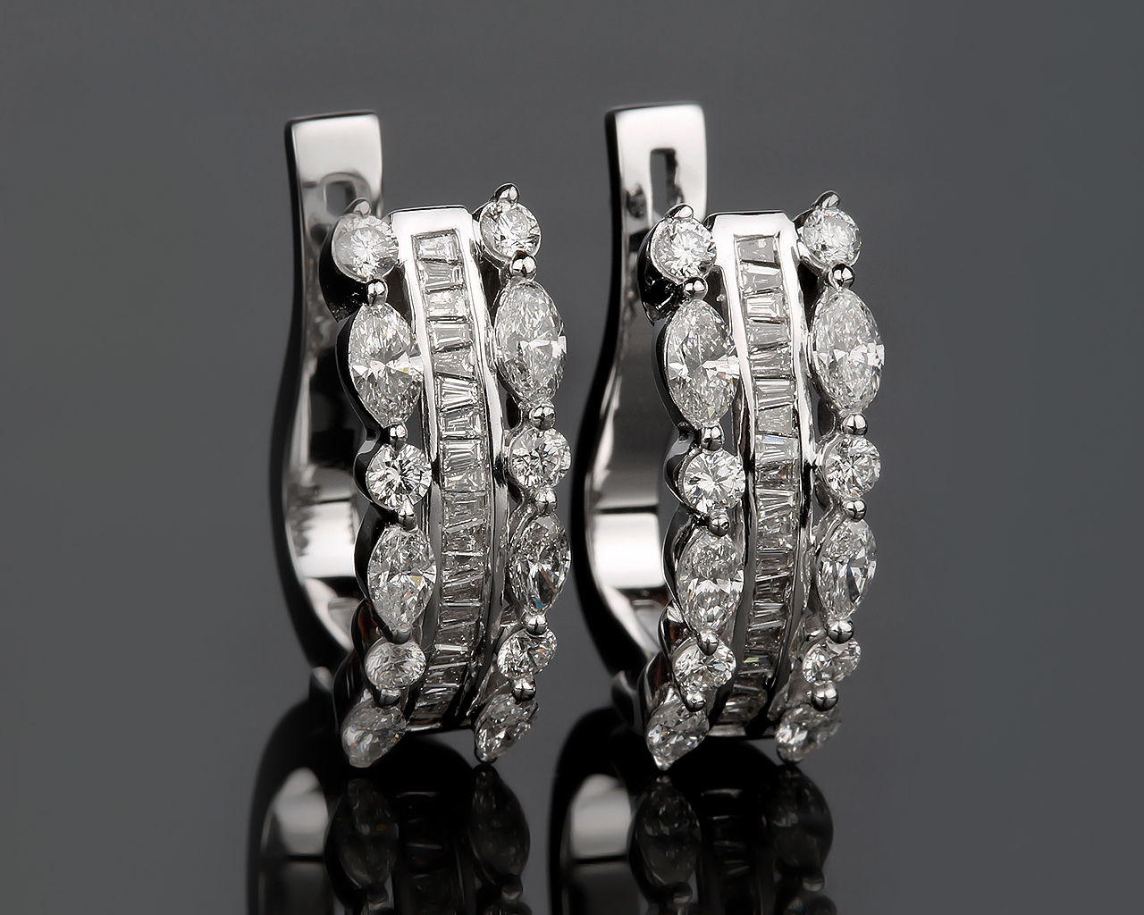 Роскошные серьги из белого золота 750 пробы усыпанные шикарными природными Бриллиантами общим весом 1.76 ct !