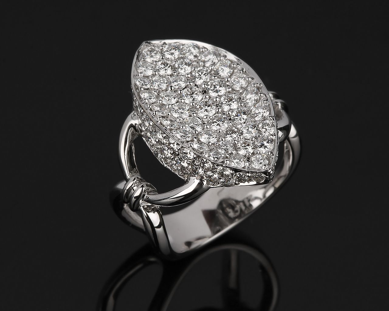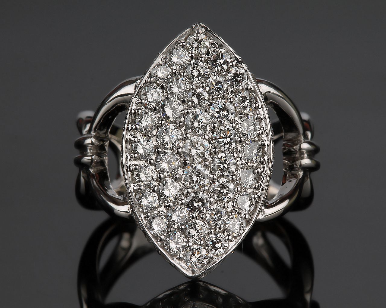 Потрясающее кольцо из белого Золота 750 пробы украшенное россыпью отличных Бриллиантов общим весом 2.11 ct !